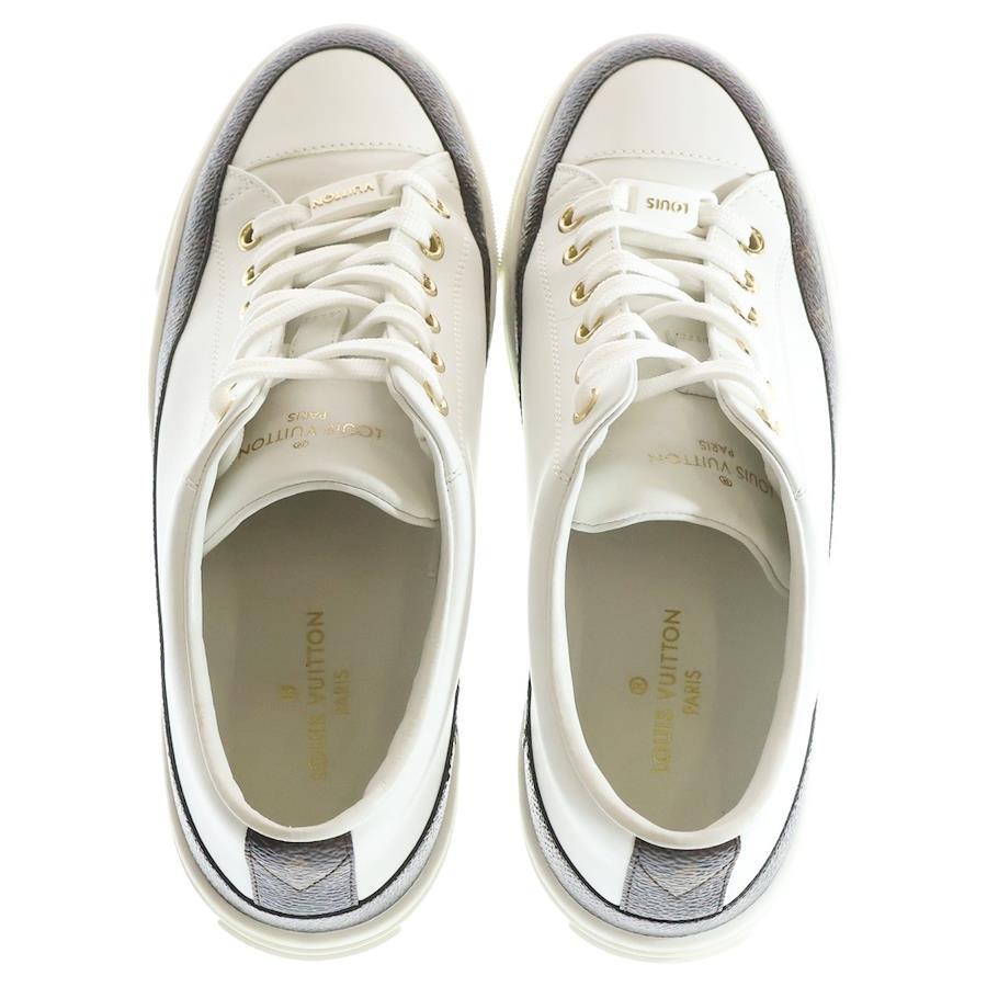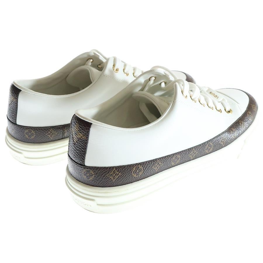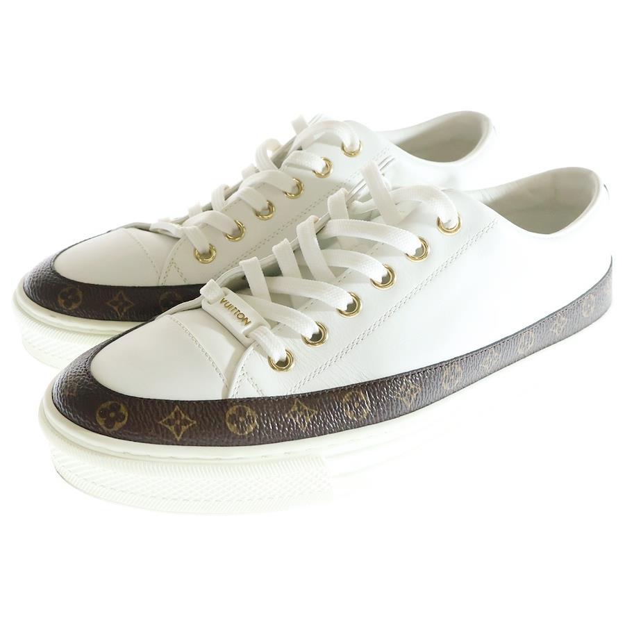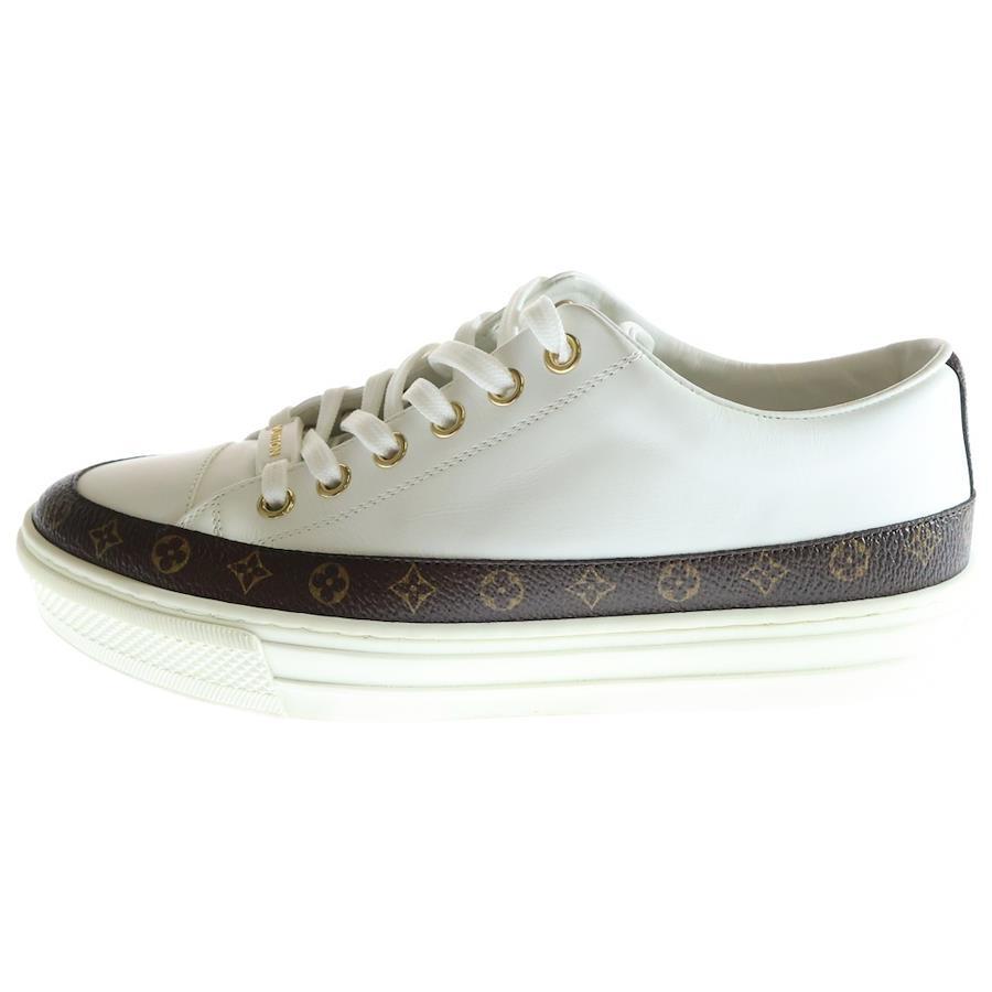 [モデル]ステラーライン モノグラム 切り替え レザー レースアップ ローカットシューズ スニーカー ホワイト レディース