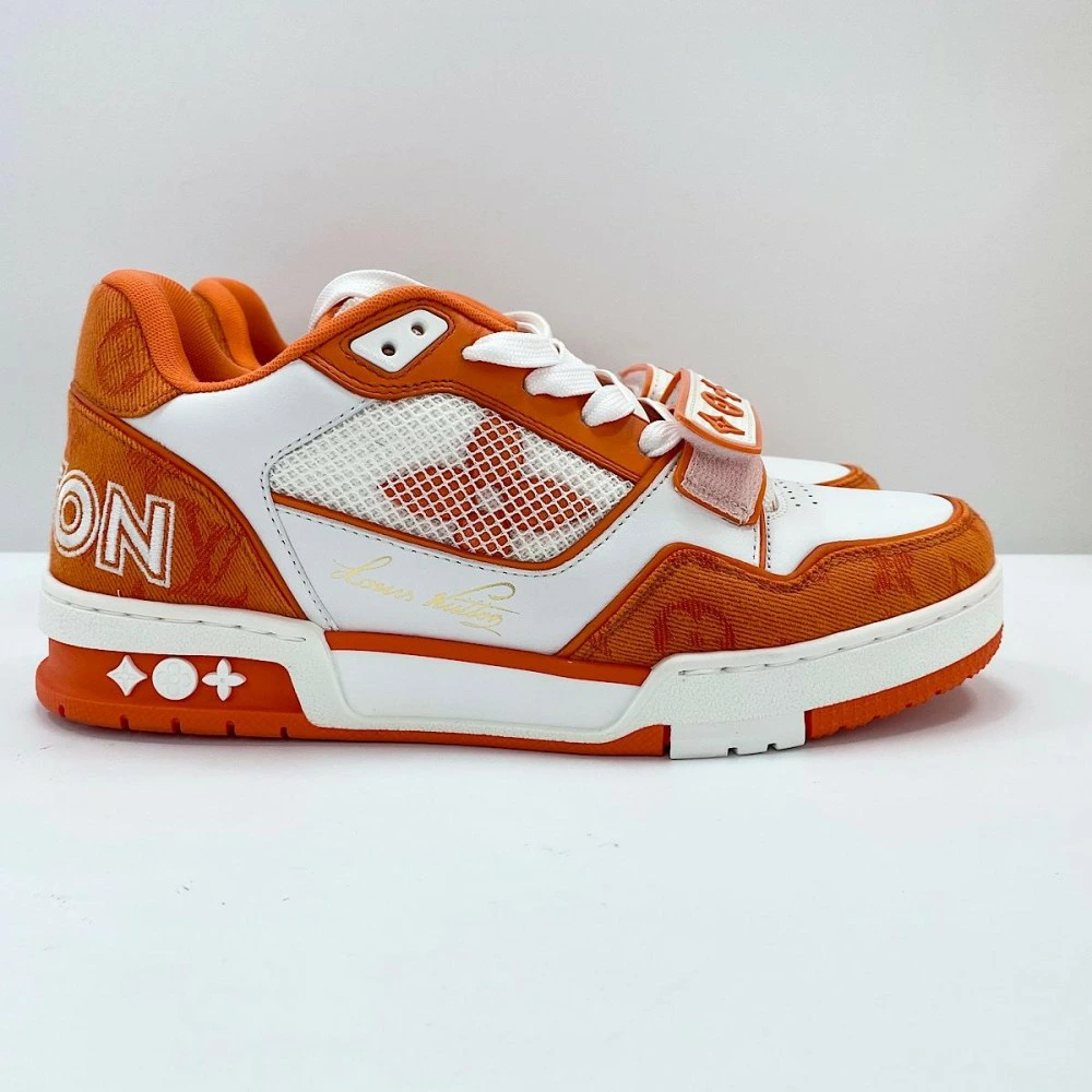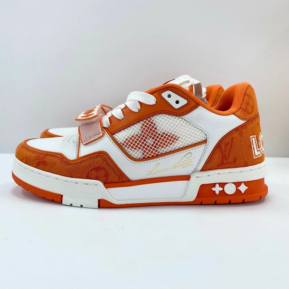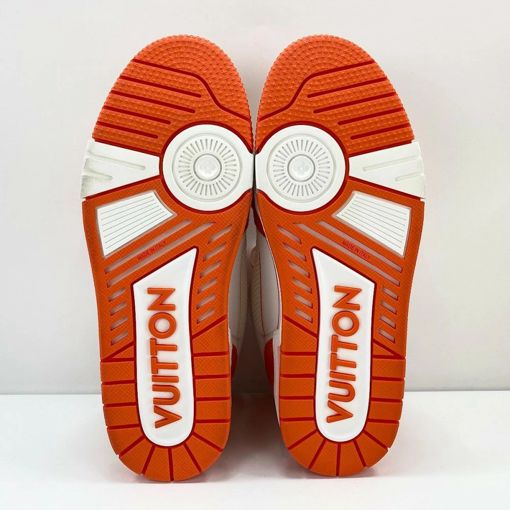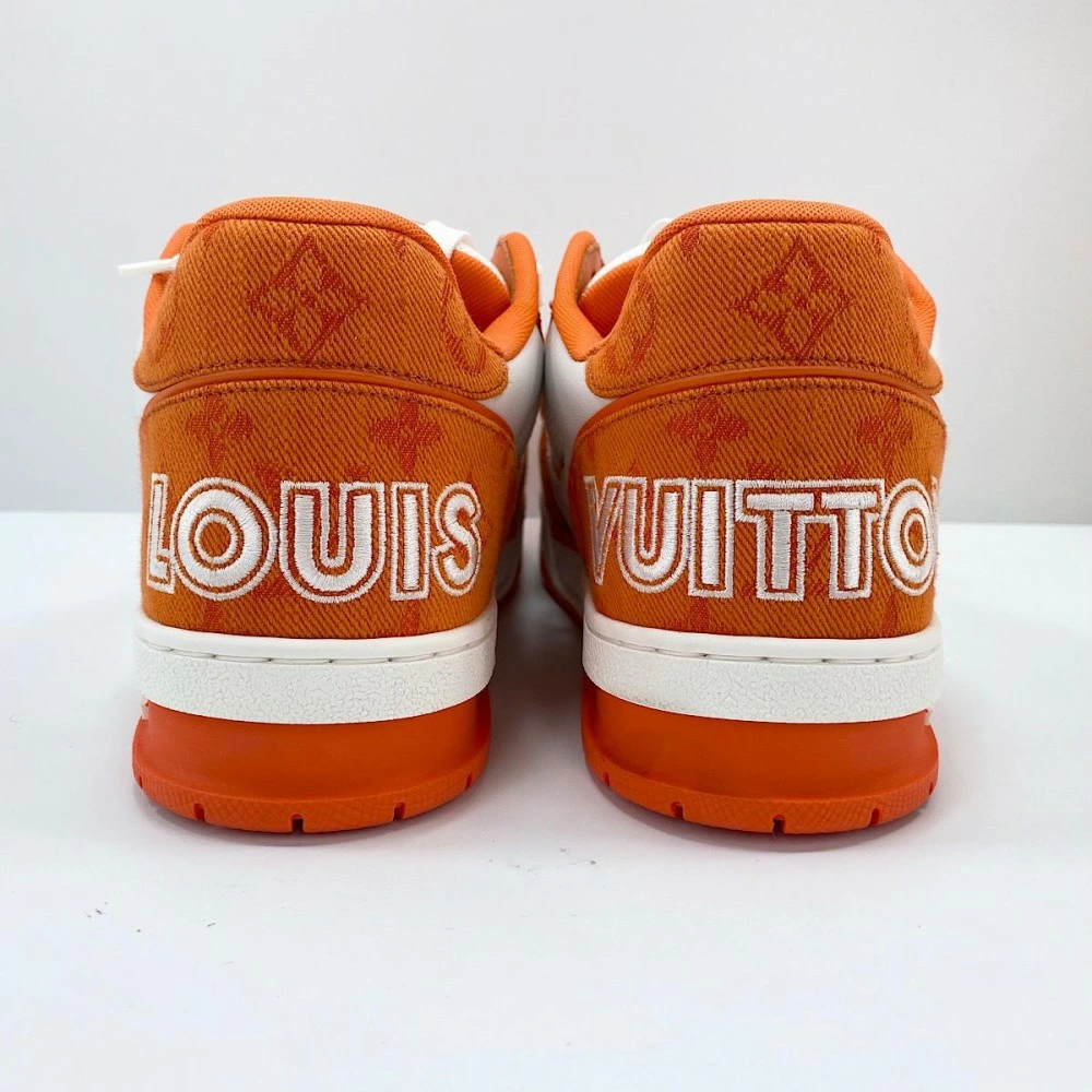 Pre-owned Louis Vuitton Women's Monogram Trainer Sneakers in Orange and White. Excellent Condition.
