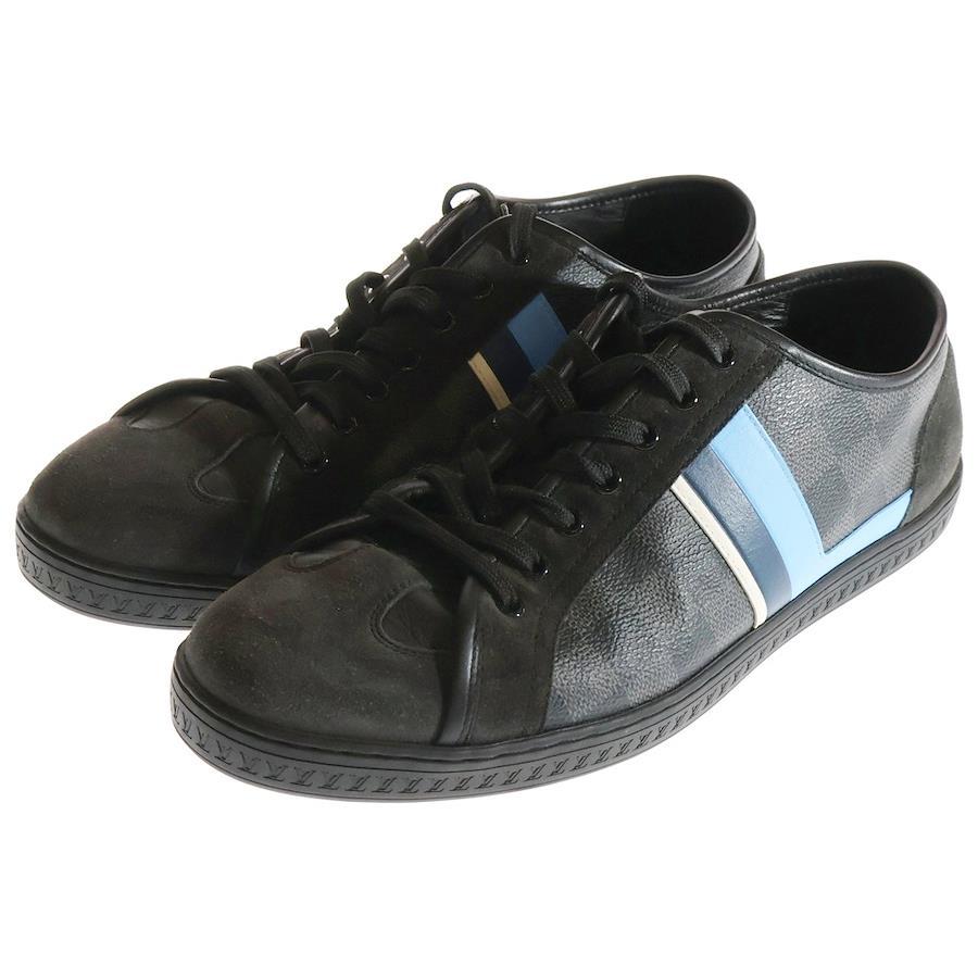 [モデル]ダミエグラフィット ローカットスニーカー シューズ ブラック×ブルー MS0190