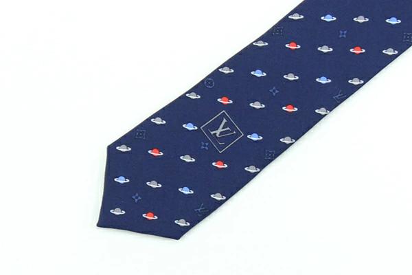 Louis Vuitton Cravate LV Planet Tie, 8cm, M73149, Navy, 100% Silk, Pre-owned, Men's Suit, Business Fashion, LOUIS VUITTON