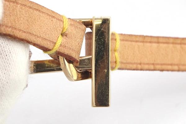 | 状態 | ヌメ革:スレ・汚れ・ヤケ・シワあり。一部薄黒っぽいスレ汚れや、伸びによるネジレクセあり。 金具:小キズ・スレ・クスミ・酸化汚れあり。 |