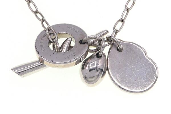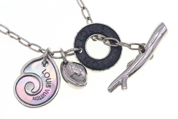 ルイヴィトンネックレスサンドチャームズM62500シルバーブラックメタルシェル中古ペンダントチョーカーアクセサリーロゴメンズLOUISVUITTON
