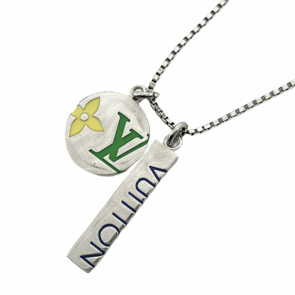 Pre-owned Louis Vuitton Monogram Play pendant necklace, unisex, long necklace with adjuster, LOUIS VUITTON metal, M01185, silver, approximately 19.2g.