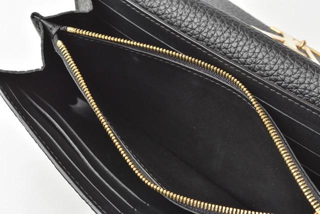 ルイヴィトンより、長財布です。 パイソン柄の大きなロゴLVプレートが印象的です。複数のクレジットカードポケットやコンパートメントが付いた機能性に優れたファスナー式の財布です。かなり収納力で、多くなりがちなカードやレシートもしっかり分けて収納できます。