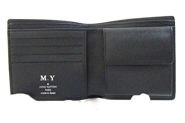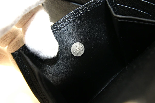| 状態 | 外側:フチに反れ、フチコーテイングにスレあり。2つ折り合わせに多少型崩れあり。 内側:- 金具:クスミあり。 ※「M.Y」イニシャル刻印あり。 |