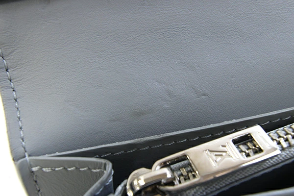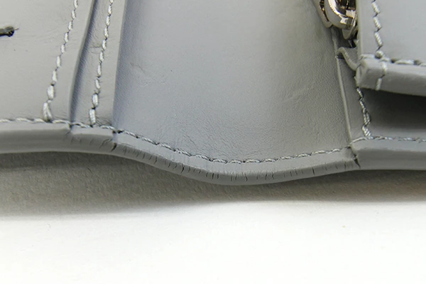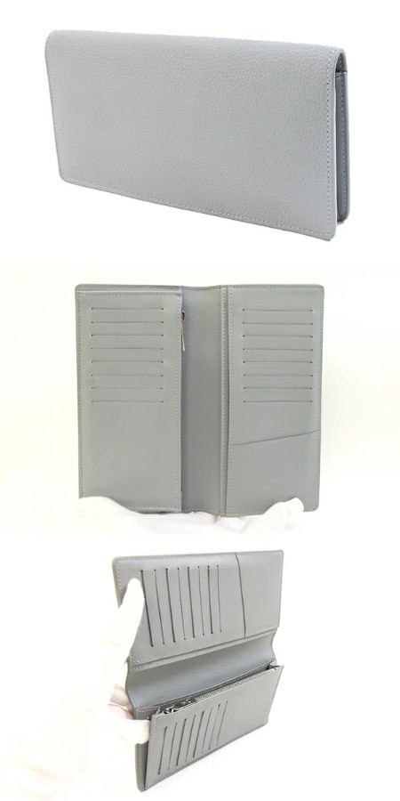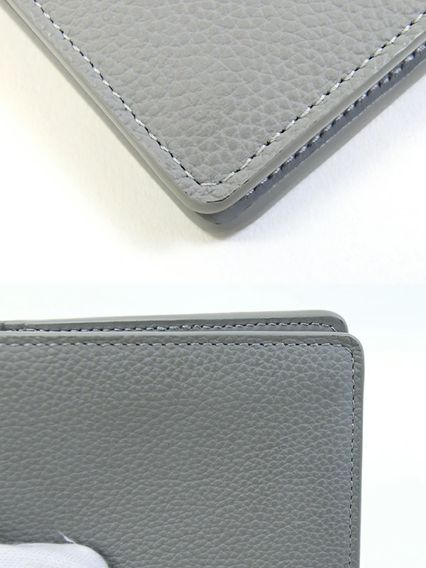 | 状態 | 外側:所々薄汚れ、フチの折部分にコーティングヒビ割れあり。 内側:所々薄汚れあり。カード入れに使用跡、薄スレヨゴレあり。中央部分押しキズあり。 金具:薄キズ、薄スレあり。 |