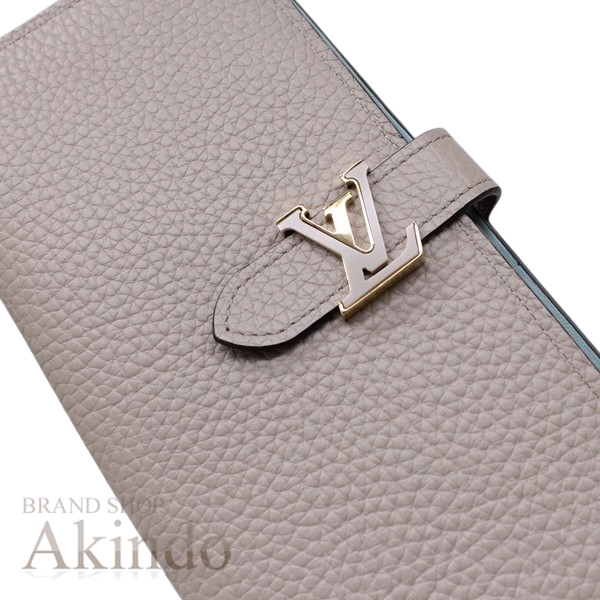 ◆ブランド ルイ・ヴィトン◆商品名 LVヴェルティカル・ウォレット◆型番 M81367◆仕様 二つ折り長財布◆参考定価 ¥181,500◆素材 トリヨンレザー◆色目 ガレ(グレージュ)◆程度 Aランク◆サイズ 約W10×H19×D2 cm◆付属品 箱・布袋◆ポケット数 札入れ×1 カード入れ×9 ポケット×3小銭入れ×1◆商品詳細グレイン(しぼ)のある柔らかなトリヨンレザーでエレガントに仕上げた「LV ヴェルティカル ウォレット」。コントラストカラーのライニングを施した内装には、8つのカードスロット、ファスナー付きコインポケット、チケットや紙幣用の大ぶりの「V」シェイプのスロットを備えています。独特のスライドスタイルの留め具には、アイコニックなバッグ「カプシーヌ」から着想を得たLV イニシャルのアクセサリーをあしらいました。小銭入れにうっすらくすみ汚れ・コイン跡があります。外側バニッシュ折り曲げ部にヒビ。正面LV金具に小傷、内側ファスナー金具にメッキはげがあります。外側・内側レザーには使用感ありません。綺麗です。詳細は写真をご覧下さい。TK2394