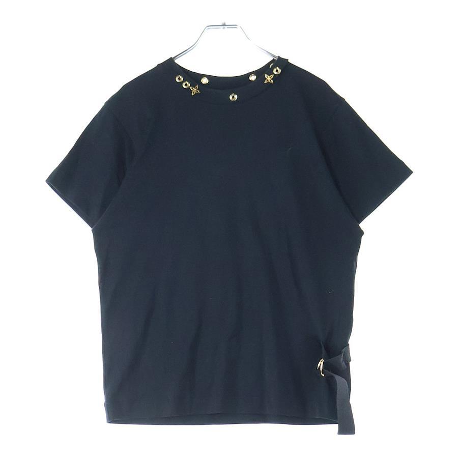 [モデル]19SS モノグラム アイレット サイドストラップ ベルトデザイン クルーネック 半袖Tシャツ カットソー ブラック RW191W JG2 FGTS03