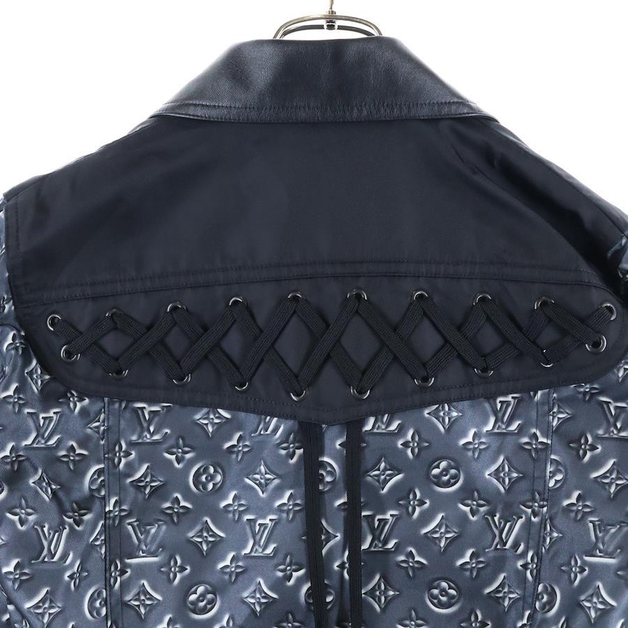 [モデル]20SS モノグラム柄プリント 切り替え レースアップ スナップボタン ナイロン ショート クロップド ジャケット ブラック/グレー レディース RW201A TSS FIJA18