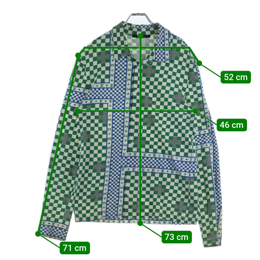 ■商品情報[商品番号]7325I240010[ブランド]LOUIS VUITTON(ルイヴィトン)[モデル]22SS プリーテッドスリムジャージー長袖シャツ グリーン RM221 J71 HMY70W[サイズ]着丈:73センチ 身幅:46センチ 肩幅:52センチ 袖丈:71センチ表記サイズ:L■状態・コンディション[状態ランク]ランク B使用感有り裏地にシミ有り首周り/両脇下に黄ばみ有り