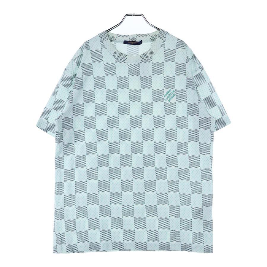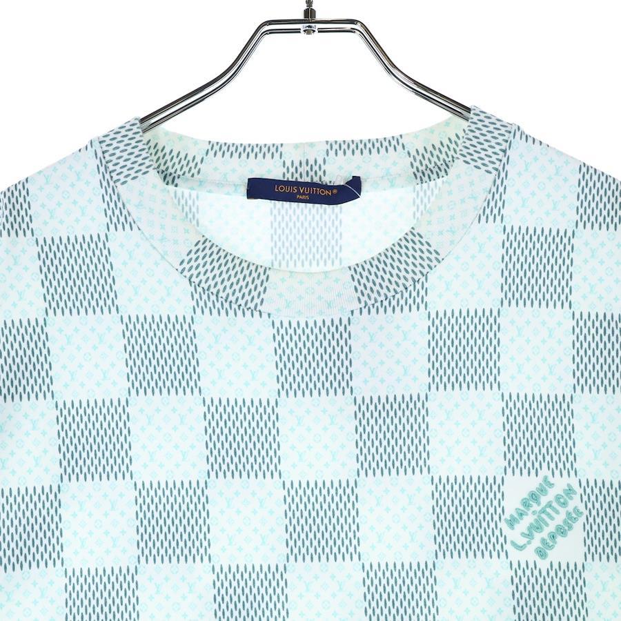 [モデル]24AW ダミエ モノグラムプリント クルーネック コットン 半袖Tシャツ カットソー ホワイト/グリーン RM242MM NPG HRY10W