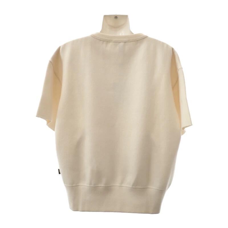 ヘビーウェイトのTシャツやスウェットを思わせるラフなデザインを、上質なウールやカシミヤで編みたてた2024AWコレクションの半袖ニットトップス。