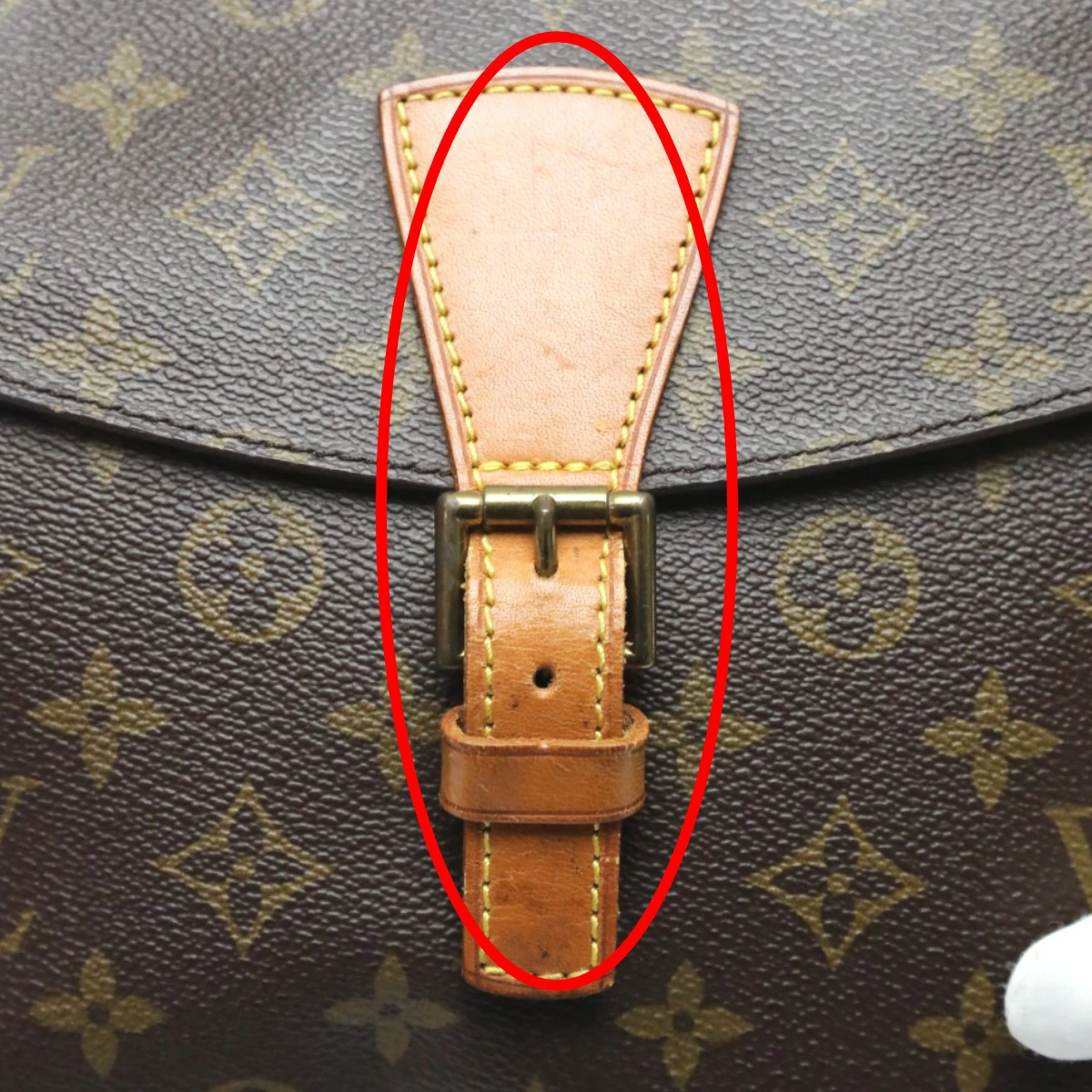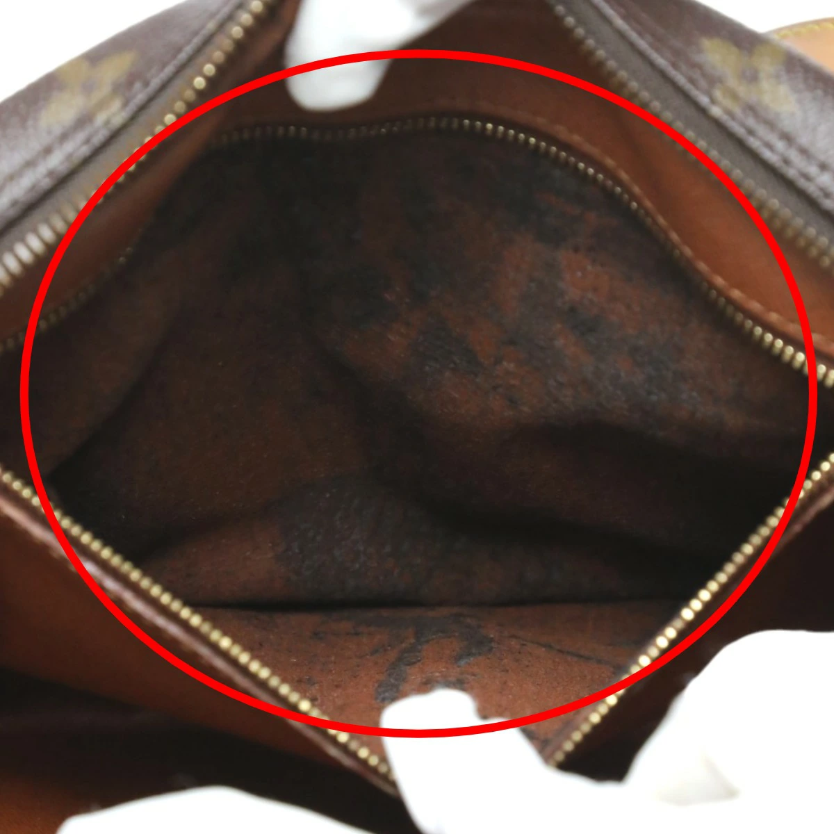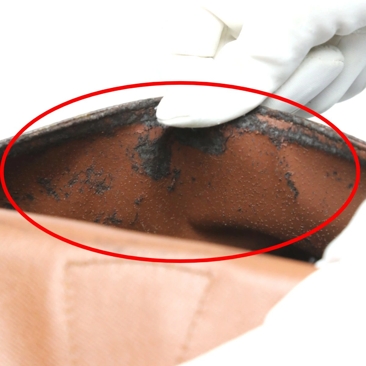 | 内側・その他 | ランク:BC 内側:汚れ、剥がれ 金具部分:小キズ、汚れ 外ポケット内側に剥がれや汚れがあります(画像15~16枚目参照) 内ポケット内側に剥がれや汚れがあります(画像18枚目参照) 金具部分に汚れや小キズがあります(画像19枚目参照) |