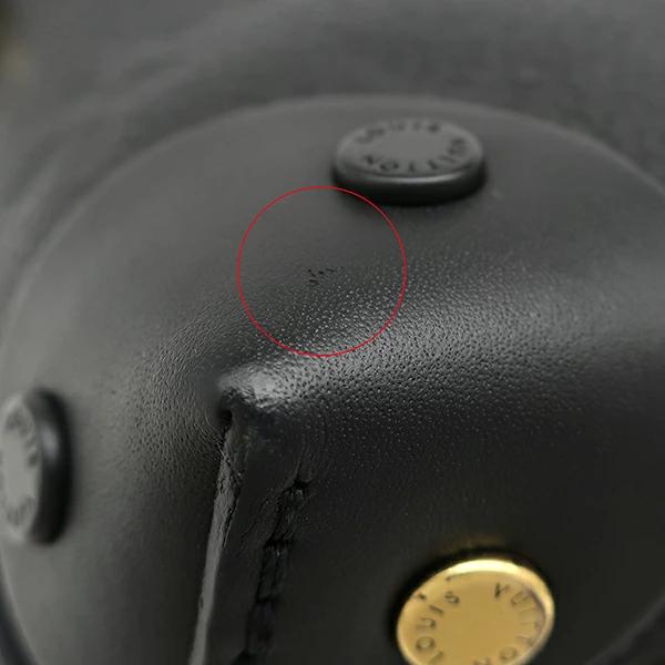 【外側】型崩れやシワ、黒レザーや四つ角に僅かな擦れ、コバに擦れや金具汚れ、割れ、ハンドルに薄汚れ、金具に小傷や塗装剥がれ、錆【内側】擦れや薄汚れ【におい】保管臭