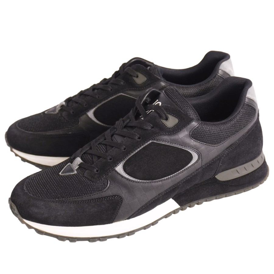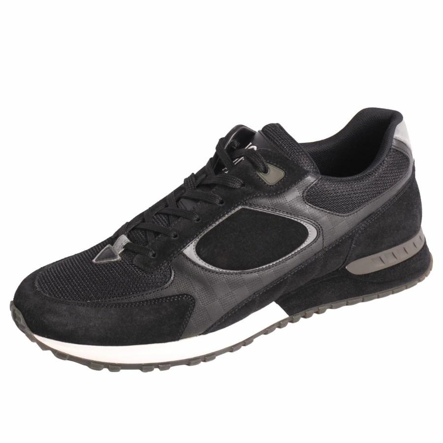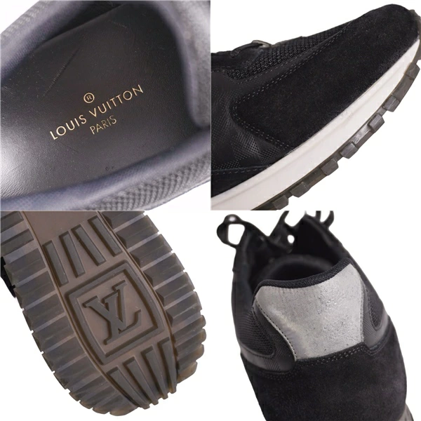 Louis Vuitton Run Away Line Lace-up Sneakers, Damier Infini Suede Leather, Men's Size 7.5 (equivalent to 26.5cm), Black [Used]