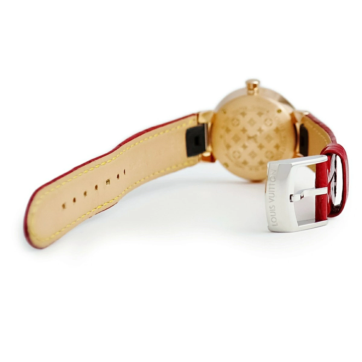 ルイヴィトン LOUIS VUITTON タンブール Q1K07 K18PG無垢 純正ダイヤ ホワイト シェル ラウンド レディース 腕時計クオーツ ゴールド 【中古】【店頭受取不可】 管理コード240500514209 (ムーブメント点検済 電池交換済) コンディション詳細:中古美品 中古A品(バンドA(尾錠跡側面に剥がれ有)) (細かなスレ、ガラス面に細かな線スレと点キズ、ケースサイド/ラグに僅かな線スレなどは御座いますが、大きなダメージは無く状態の良い綺麗なお品物です。)