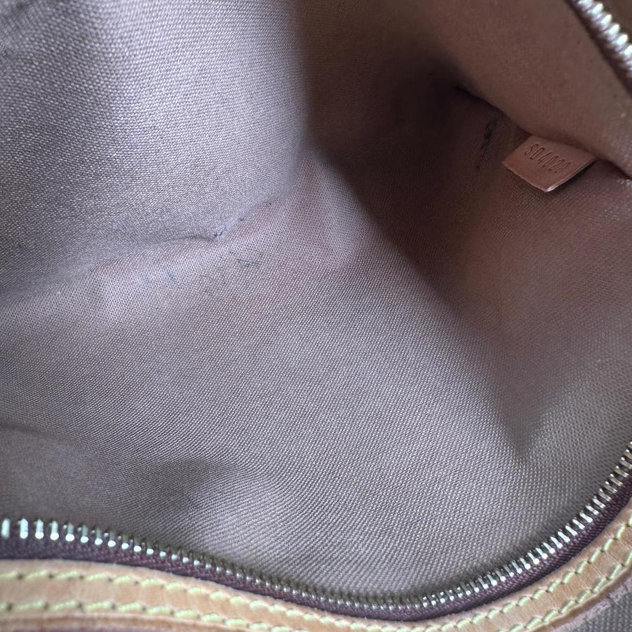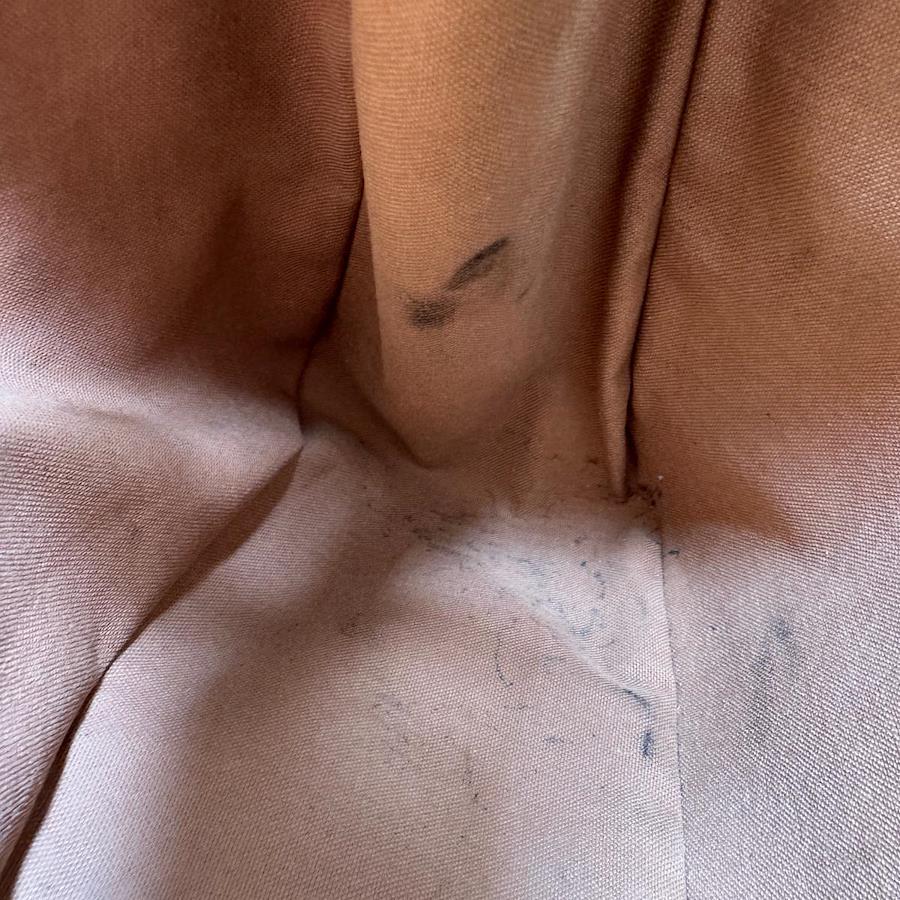 | 外側 | ランク:B 切り替えし部分:小キズ、汚れ、スレ 形状:型崩れ ハンドル・ストラップ:焼け、汚れ コーナー:スレ、劣化 コーナー部分にスレ、劣化あり(画像5〜9枚目参照) ハンドル部分に汚れや焼けがあり(画像9〜11枚目参照) 側面のベルト部分に汚れやスレ、小キズがあり(画像13〜14枚目参照) 型崩れあり |