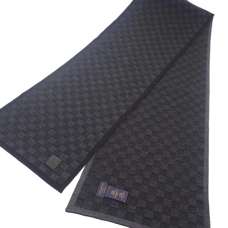 Louis Vuitton Neo Petit Damier Scarf M77988, Wool, Black, Men's, Pre-owned, Rank A