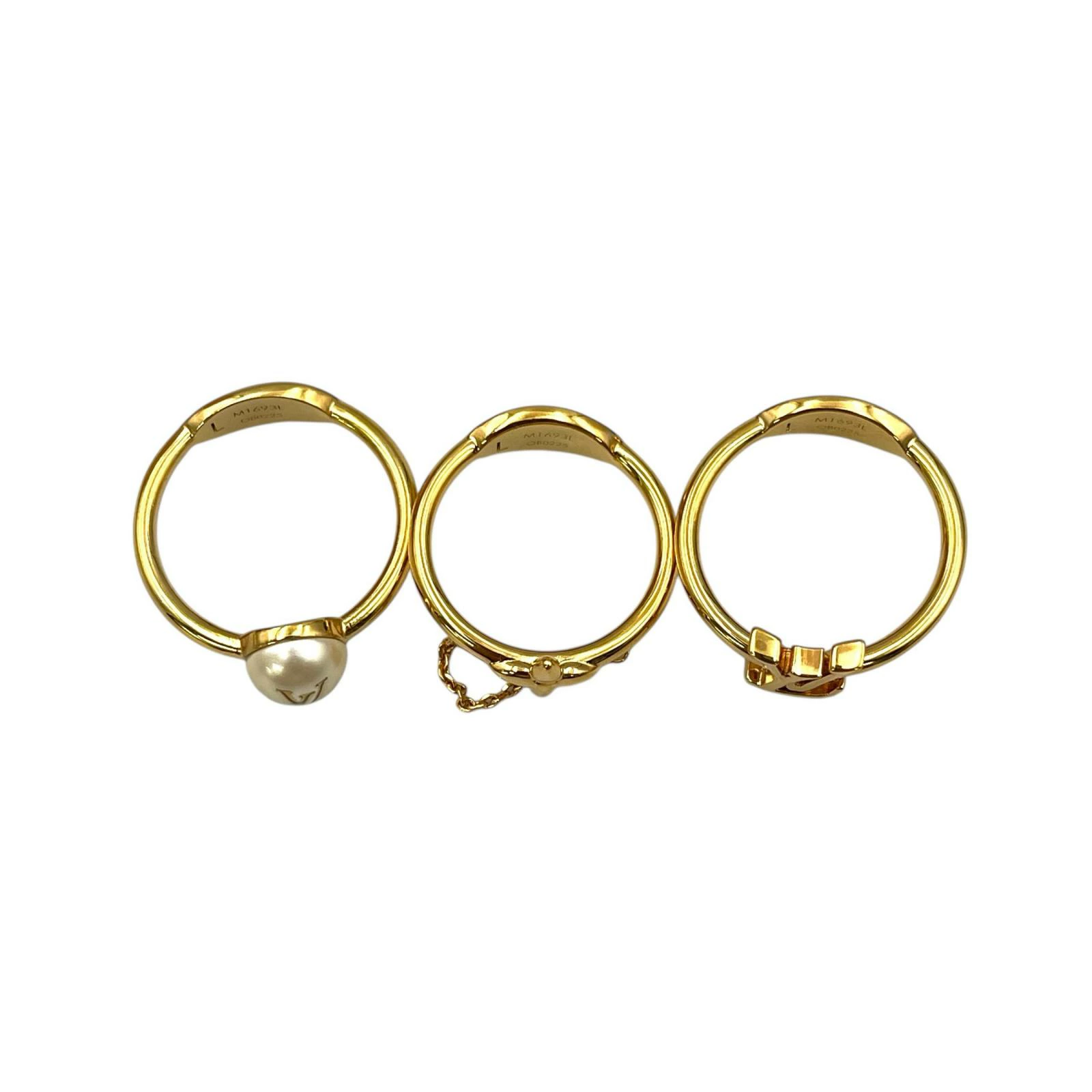 Louis Vuitton Blooming Pearl Rings, Set of 3, M1693L, GP, Women's