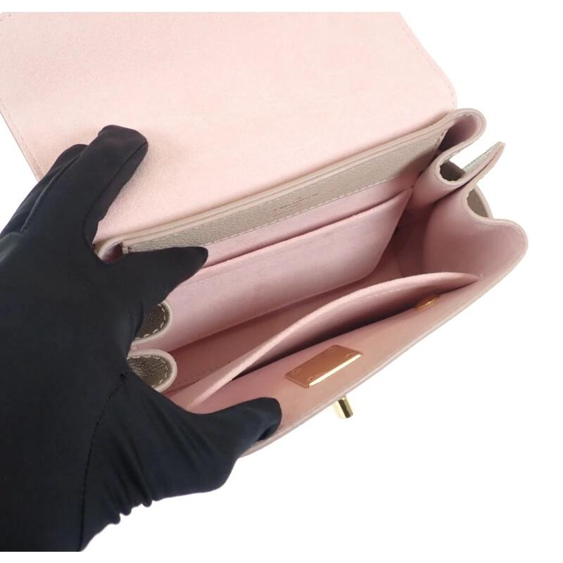 フラップに輝く「LV」イニシャルモノグラムのターンロックが、シンプルながらエレガントな印象をプラスしてくれます。