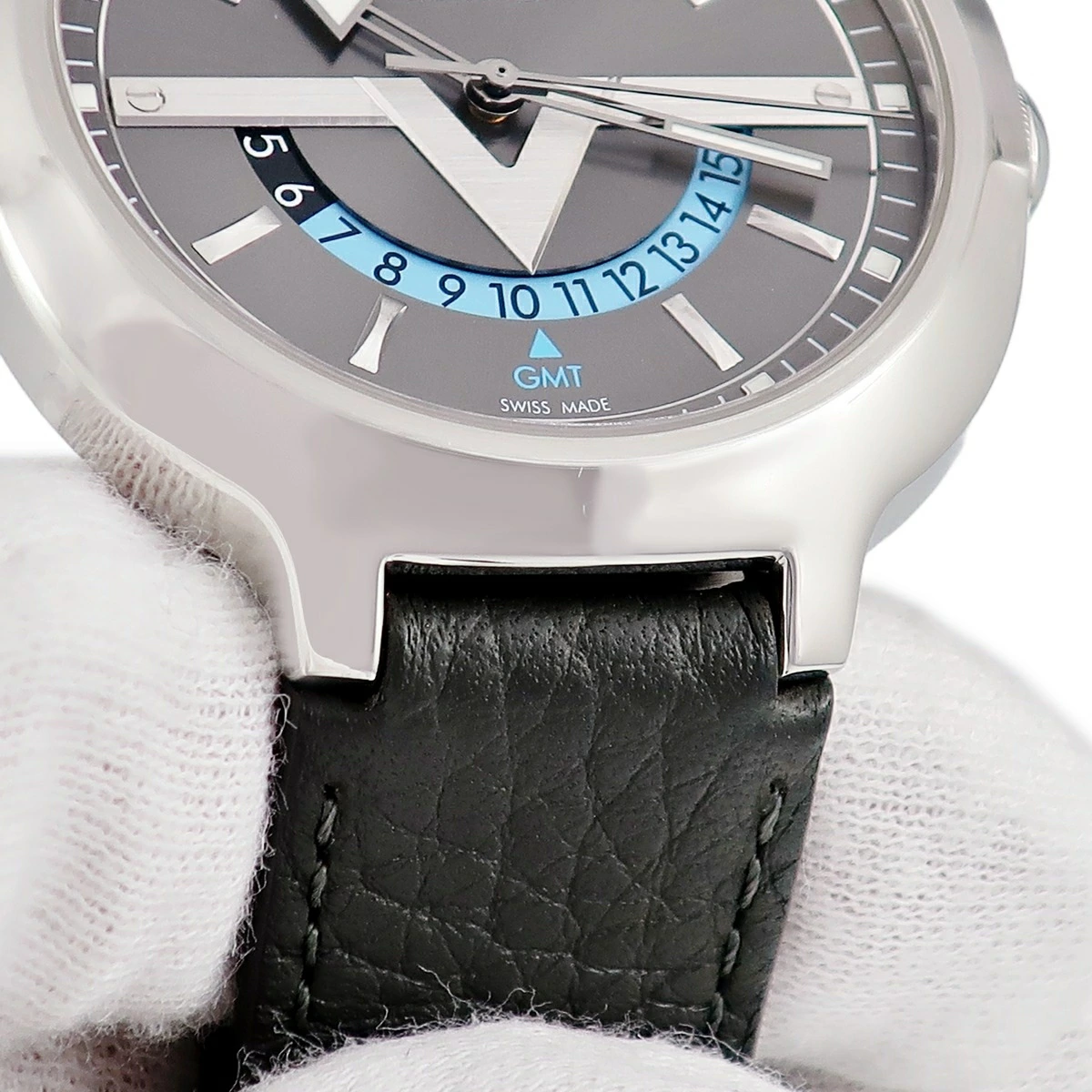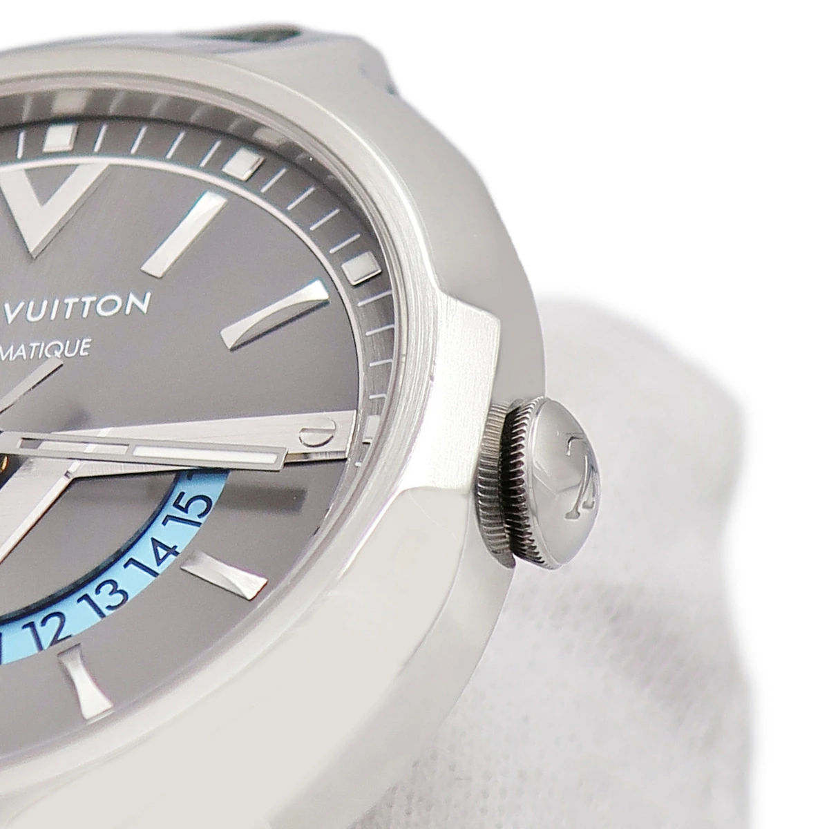 ルイヴィトン LOUIS VUITTON ヴォヤジャー GMT Q7D30 グレー 水色 バー Vマーク デュアルタイム メンズ 腕時計自動巻き グレー 【中古】【店頭受取不可】