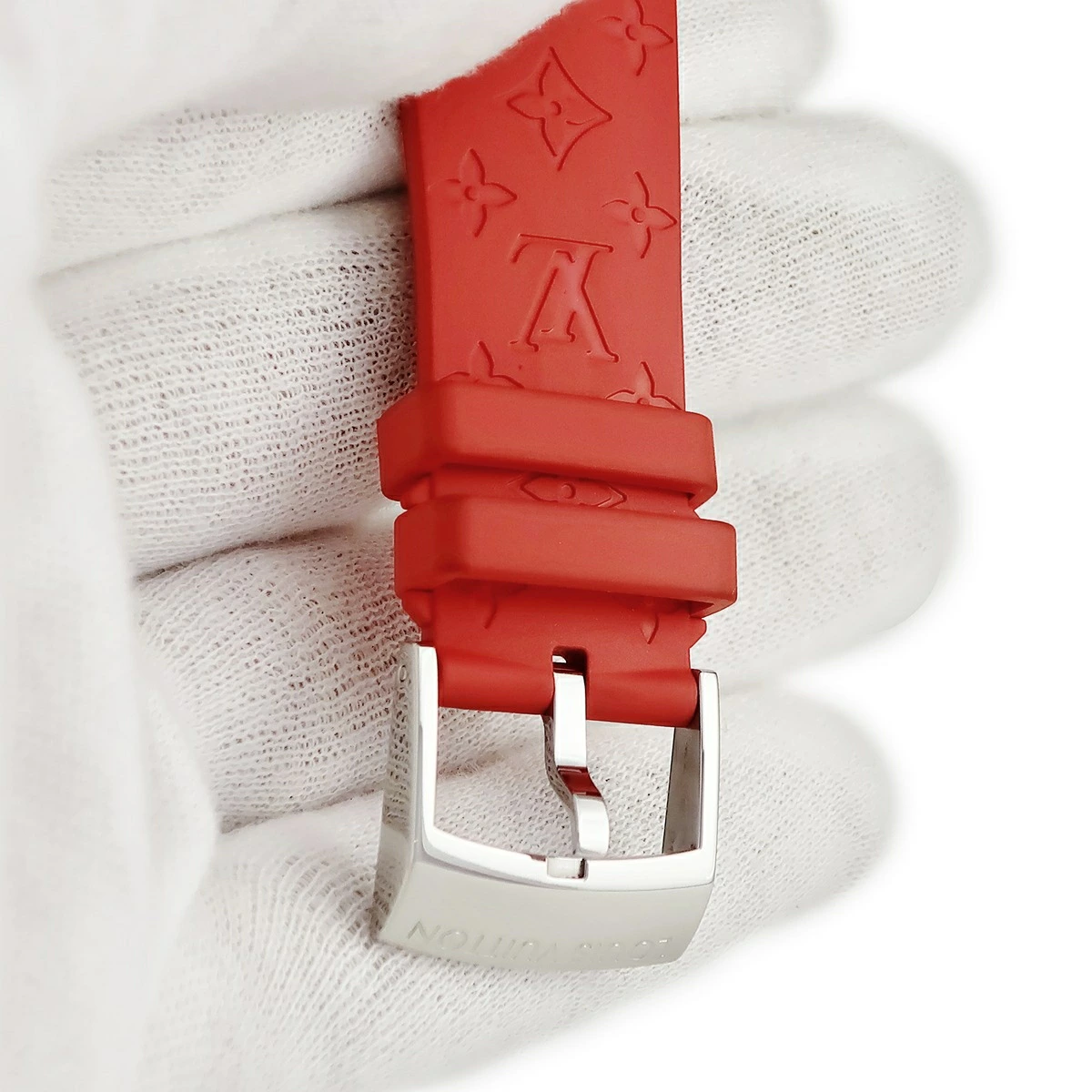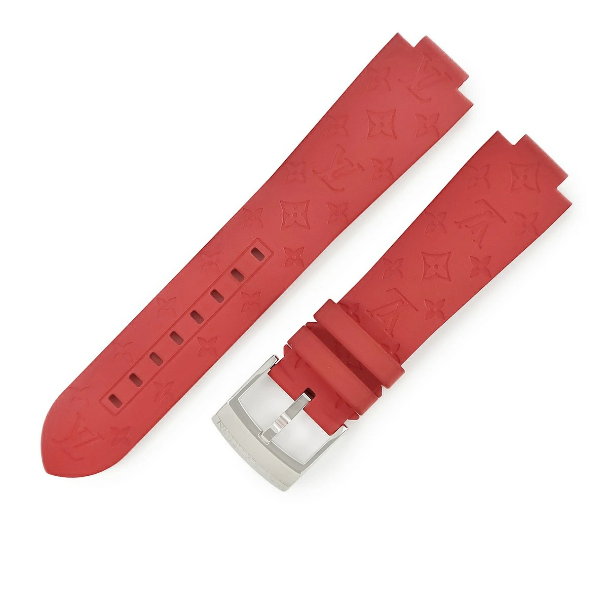 ▲クリックで拡大されますルイヴィトン LOUIS VUITTON 腕時計パーツ 純正 タンブール用 ラバーバンド レッド ワンタッチ 替え 予備 ベルト 純正SS製尾錠付き モノグラム 21mm レッド 赤 - メンズ定番 人気 美品 【中古】