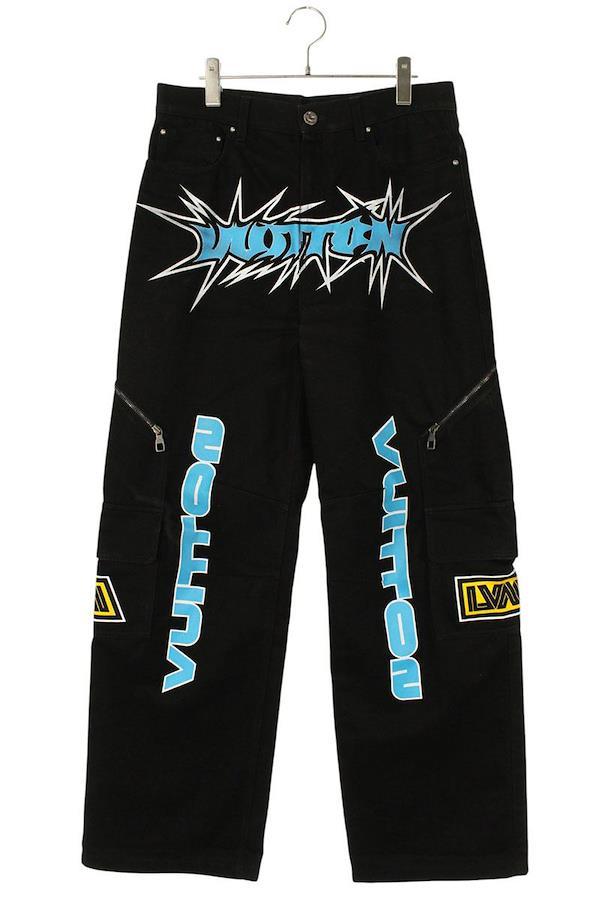 ランク:B (使用感がある商品)状態備考:プリント部分、裾裏等に汚れがありますウエストまわり、股、裾等に擦れがありますブランド:ルイヴィトンサイズ:29インチ色:ブラック×ライトブルー実寸:ウエスト幅40cm 股上30.5cm ワタリ幅33cm 股下80.5cm 裾幅26cm重さ:-素材:(表地) コットン (裏地) ポリエステル65%、コットン35% (パッチ) 牛革付属品:なしその他特徴:-管理番号:10831-250904-0038