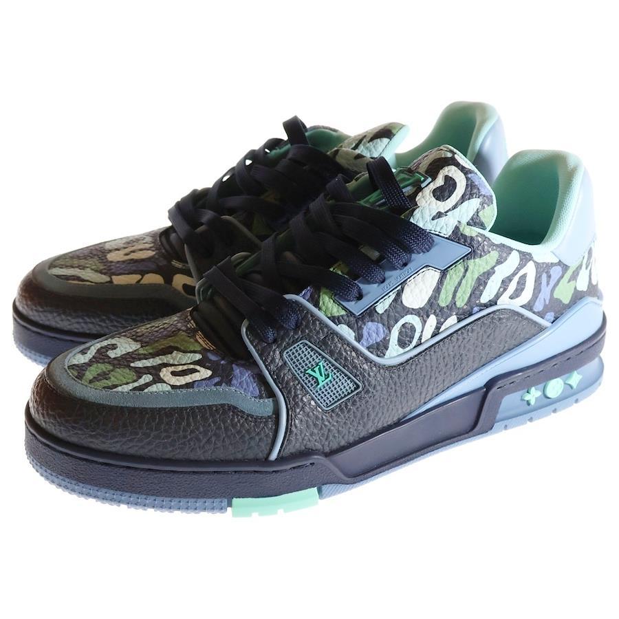 [モデル]LVトレイナーライン アルファベットカモフラージュ ローカットスニーカー ネイビー 1AARY0