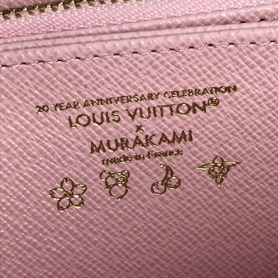 【商品説明】モノグラム・キャンバスに、村上隆氏の代表的なモチーフである桜の花とキャラクターがプリントされた、非常に目を引くデザインです。