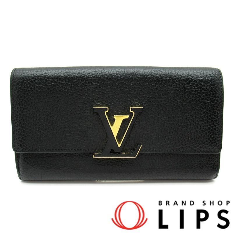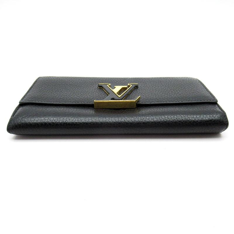 Pre-owned Louis Vuitton Capucines Portefeuille M61248 Taurillon Leather Women's Noir