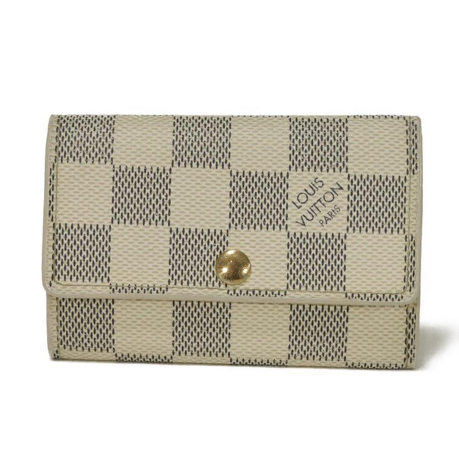 ルイヴィトンのロゴがあしらわれた、ダミエアズールキャンバスを使用した「ミュルティクレ 6」スナップ式6連キーケースです。 |