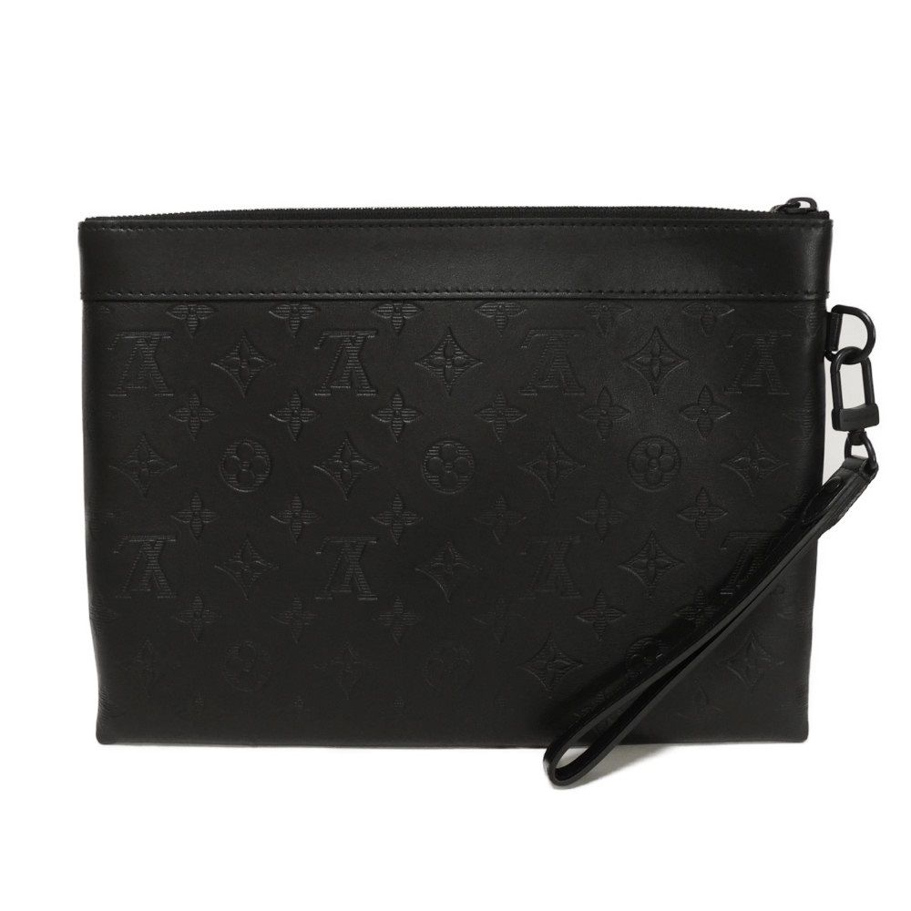 | シャドウレザーにルイヴィトンのモノグラムエンボス加工が施された「ポシェット・トゥ・ゴー」ハンドルストラップ付きクラッチバッグです。 |