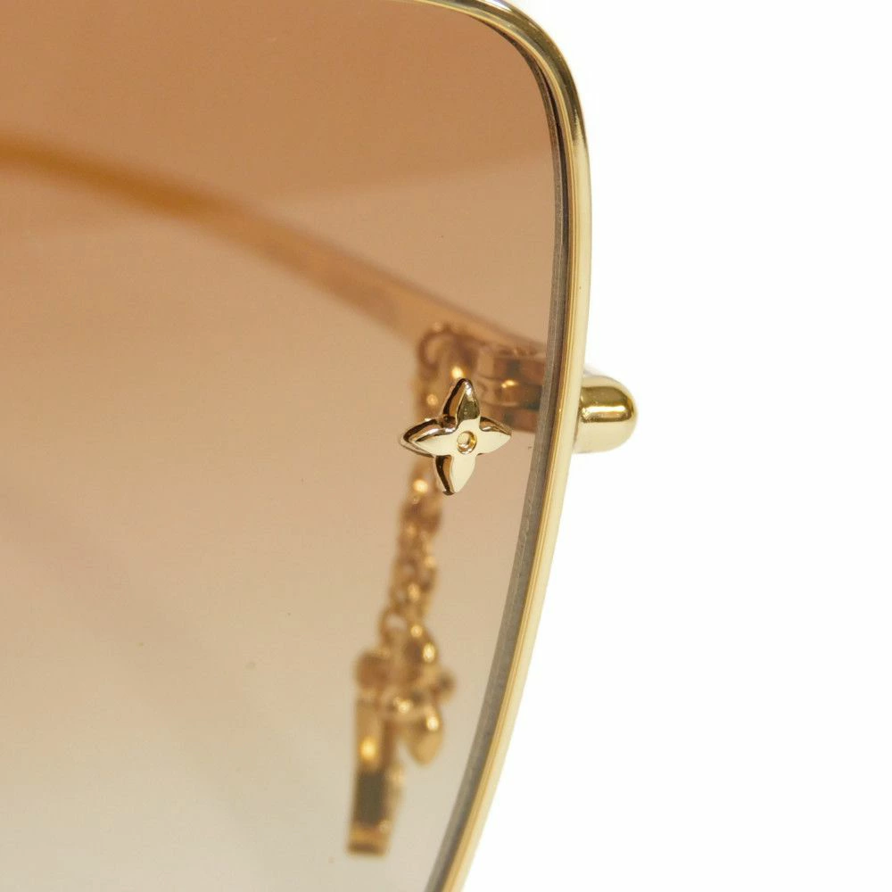 | オーバーサイズなシェイプとテンプルにはルイヴィトンのLVロゴとフラワーが揺れる「LV チャーム・スクエア」サングラスです。 |