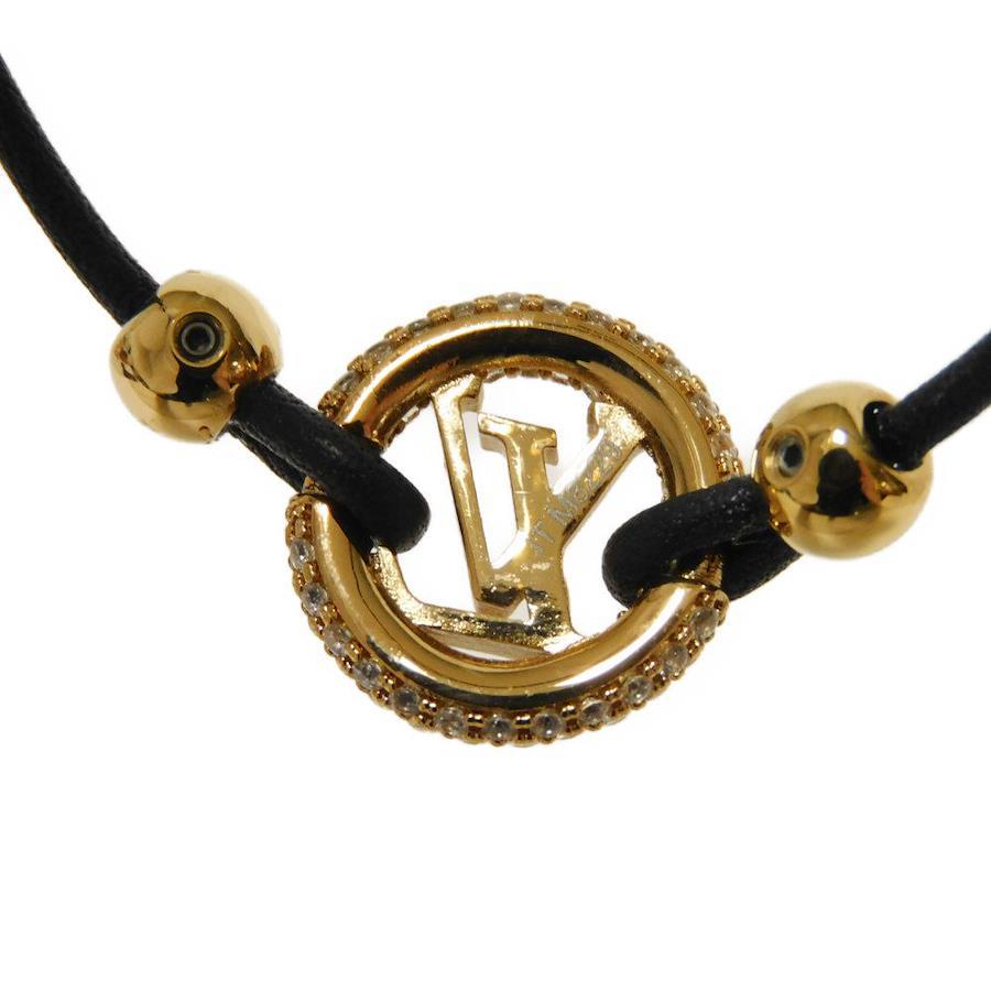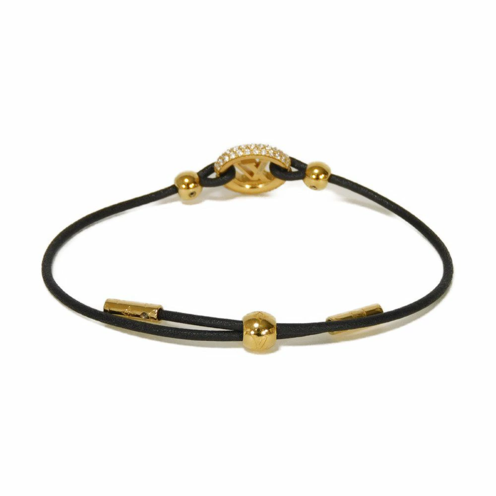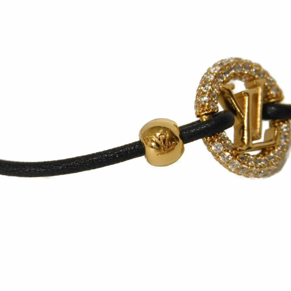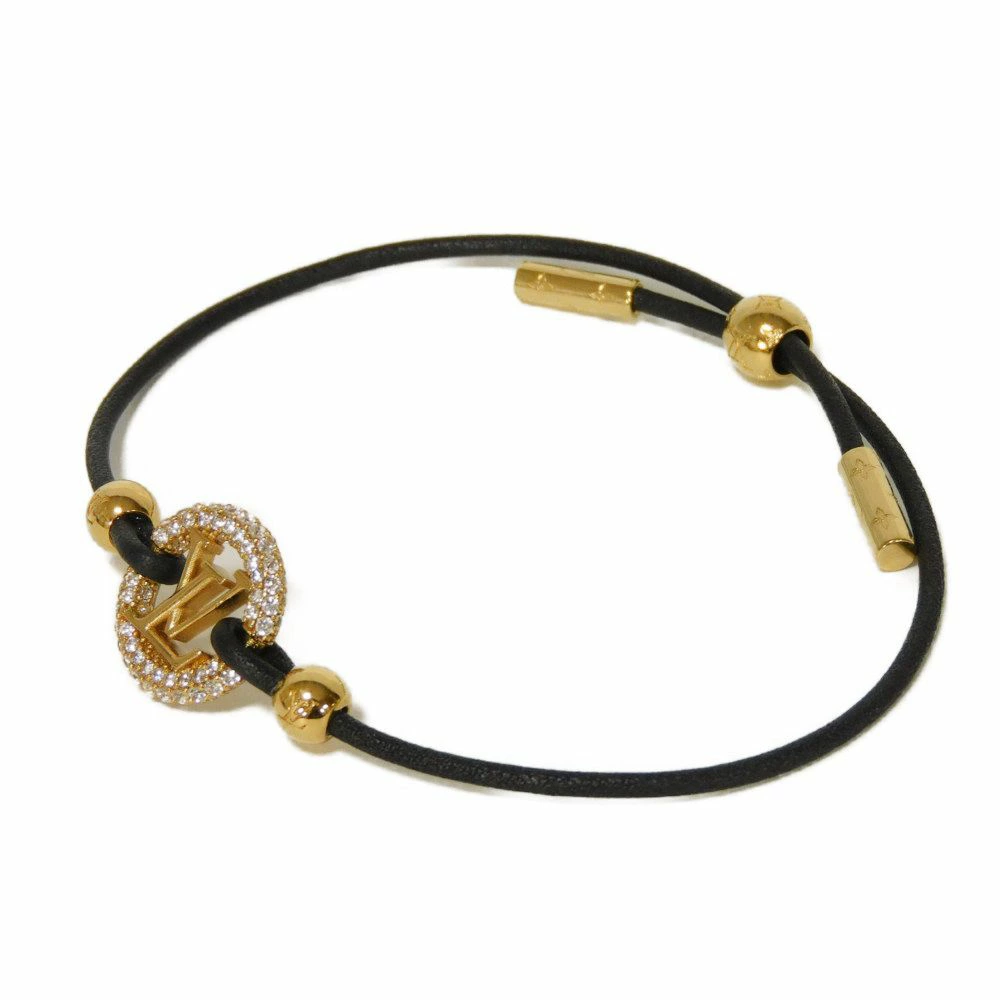 | ルイヴィトンのLVサークルにラインストーンが装飾された「ブラスレ ルイーズ バイ ナイト ストラス」レザーコードブレスレットです。 |