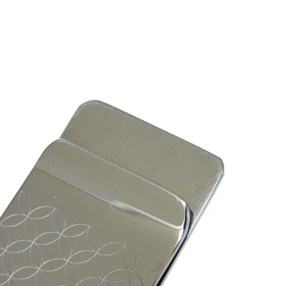 サークル状のモノグラムフラワーモチーフにルイヴィトンのLVロゴが型抜きされた「ビルクリップ・シャンゼリゼ」。 お札を30枚程度までのクリップ可能なマネークリップです。 |