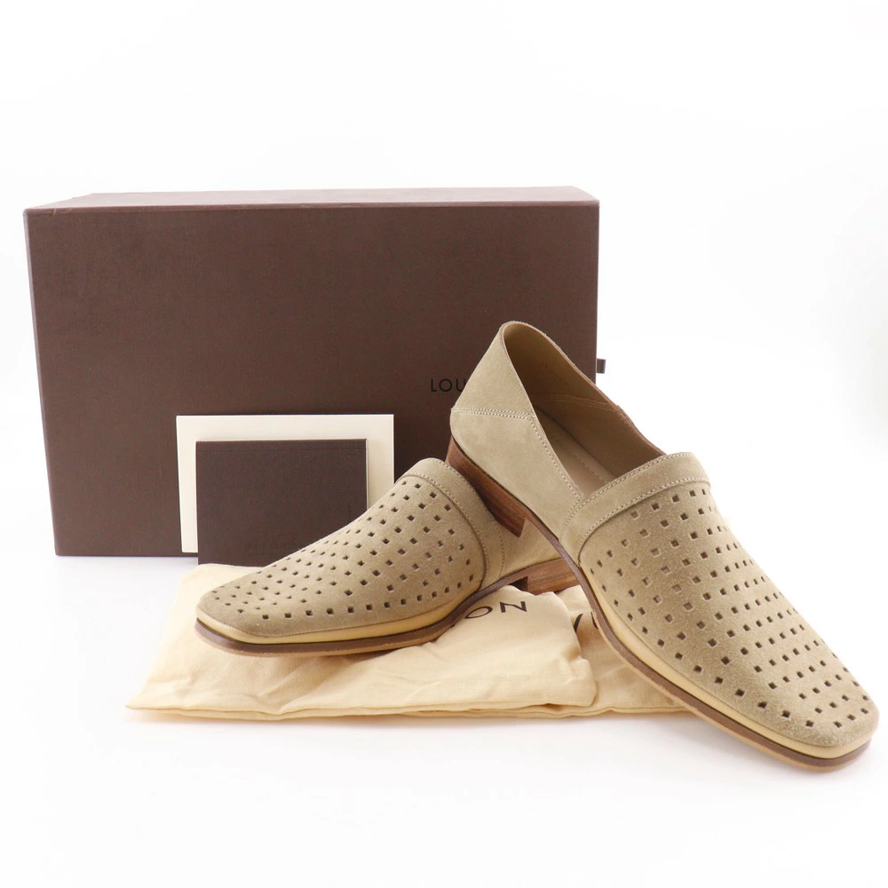 Pre-owned Louis Vuitton Men's Perforated Suede Loafers, Beige, ST0025, A+ Rank