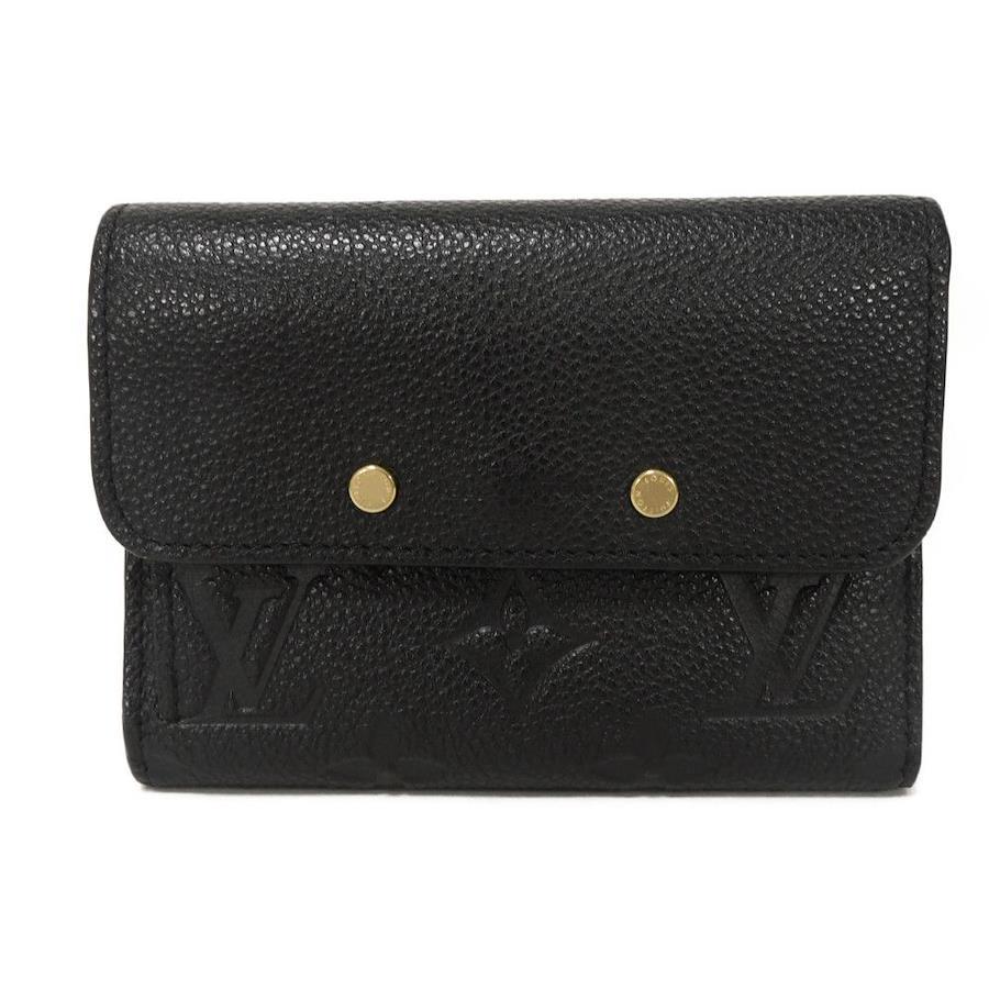 Pre-owned Louis Vuitton Portefeuille Pont Neuf Compact Tri-fold Wallet with LV Logo, Flower Black, Monogram, Empreinte Noir, M62184. This elegant, high-quality wallet features a bill compartment and is perfect for both men and women.