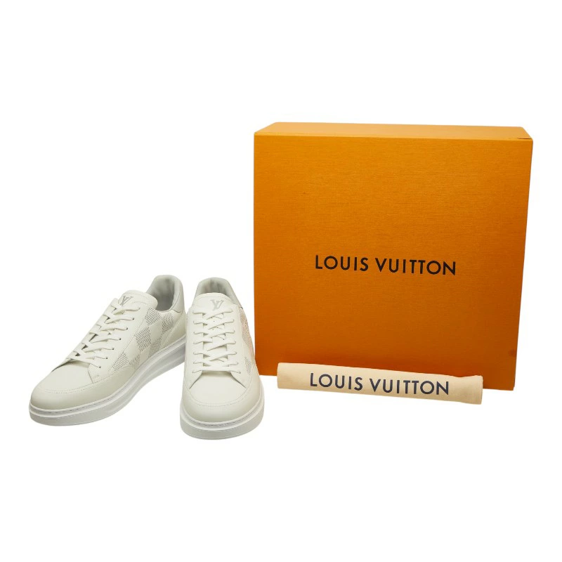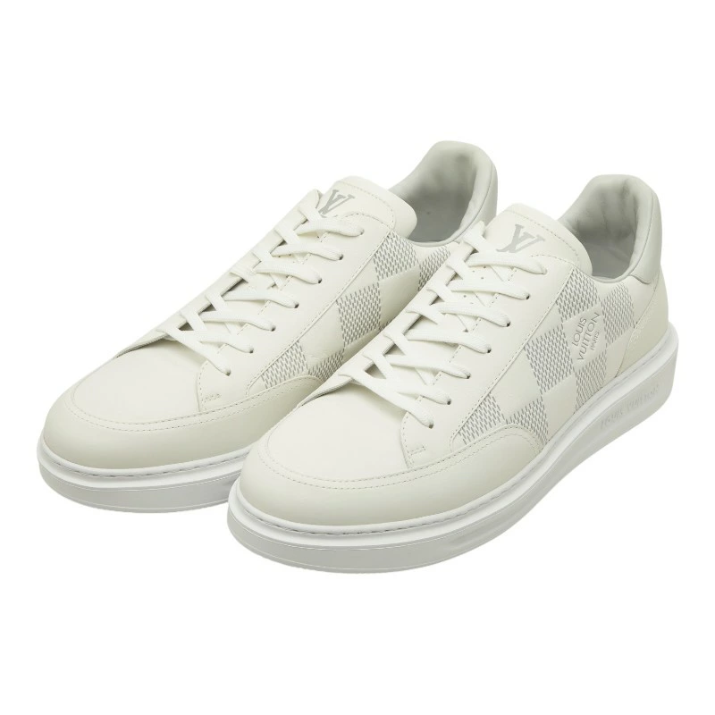 - ルイ ヴィトン ダミエ スニーカー サイズ:12 ホワイト グレー レザー メンズ LOUIS VUITTON 【中古】