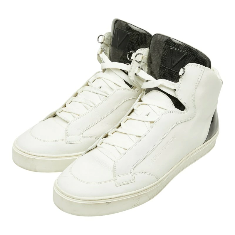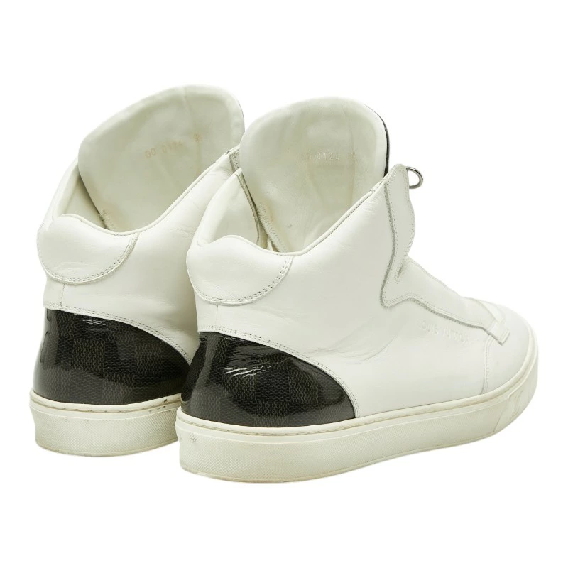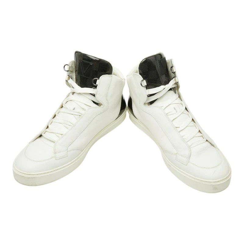 - ルイ ヴィトン ダミエ ミドルカット スニーカー サイズ9 1/2 ホワイト ブラック レザー メンズ LOUIS VUITTON 【中古】