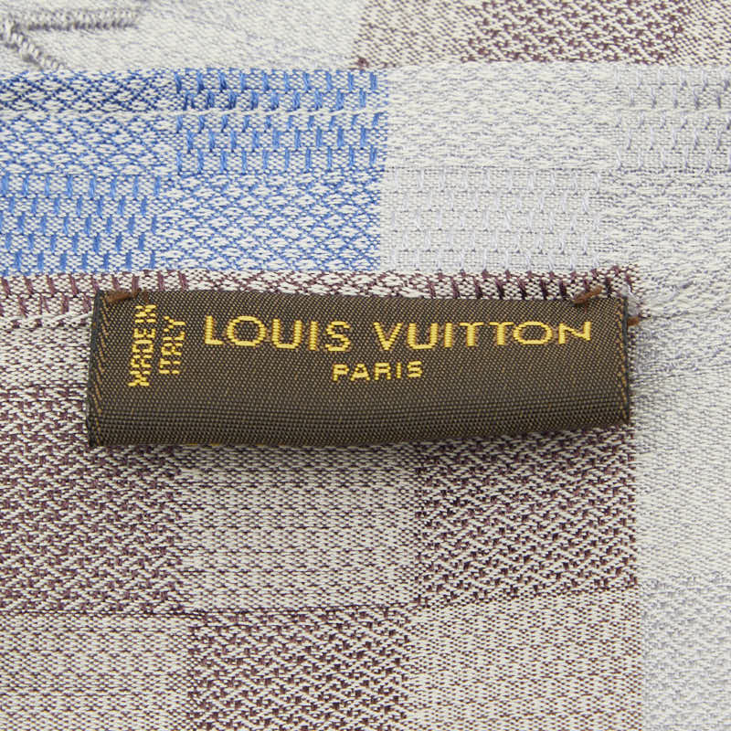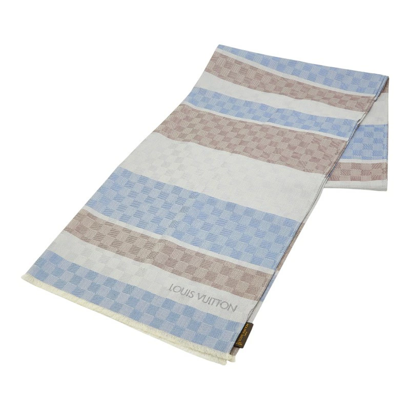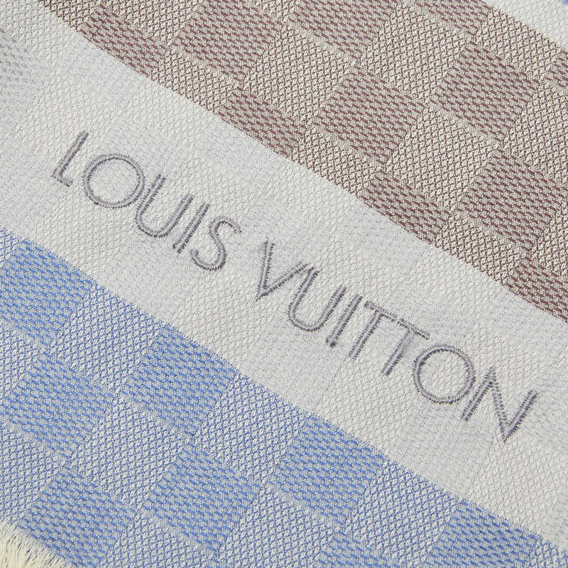 - ルイ ヴィトン ダミエ 大判スカーフ ストール 401910 ブラウン ゴールド シルク ウール レディース LOUIS VUITTON 【中古】