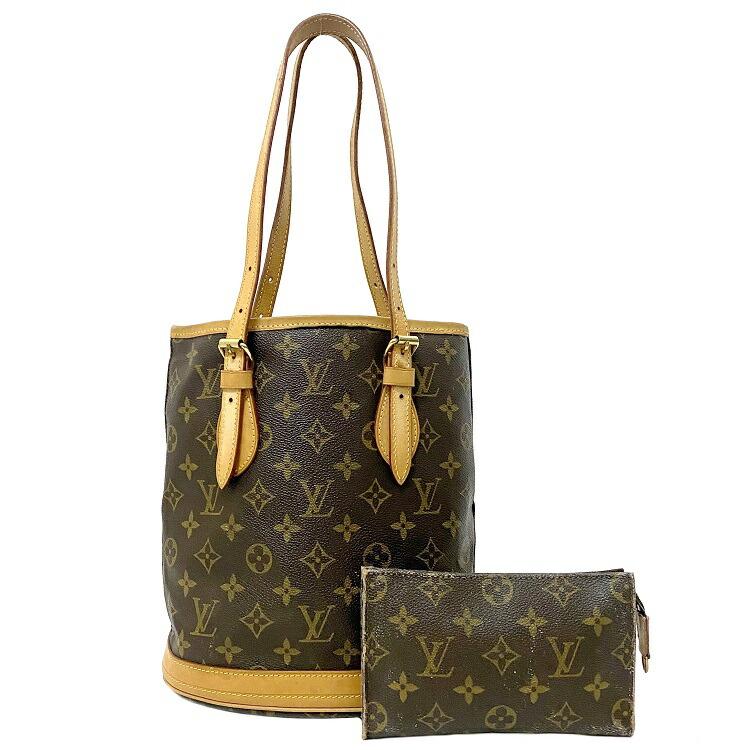 商品名:プチバケットPMブランド名:ルイヴィトン/LOUISVUITTON商品ランク:Bランク素材:モノグラムキャンバスヌメ革サイズ:(約)w:23cm×h:26cm×d:15.5cmポーチw:17cm×h:10.5cm×d:2cm型番・品番:M42238シリアル・Ref:AR0967カラー:ブラウンベージュモノグラム仕様:内:ファスナーポケット×1オープンポケット×1付属品:ポーチ詳細説明:ヌメ革部分全体的にヤケによる変色や若干のシミ汚れ、内側が全体的に劣化のベタ付きにより剥がれや粉吹き、内側の金具に緑青、ポーチ内側にベタ・表面にベタの汚れ等、使用感はありますが、まだまだお使い頂けるお品物です。コメント:ルイヴィトン定番・人気のプチバケットPM。収納力も高く、程よいサイズ感で普段使いに最適なお品物です。商品番号:ec-15544no.0510784221116