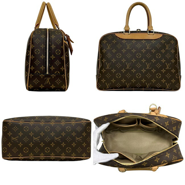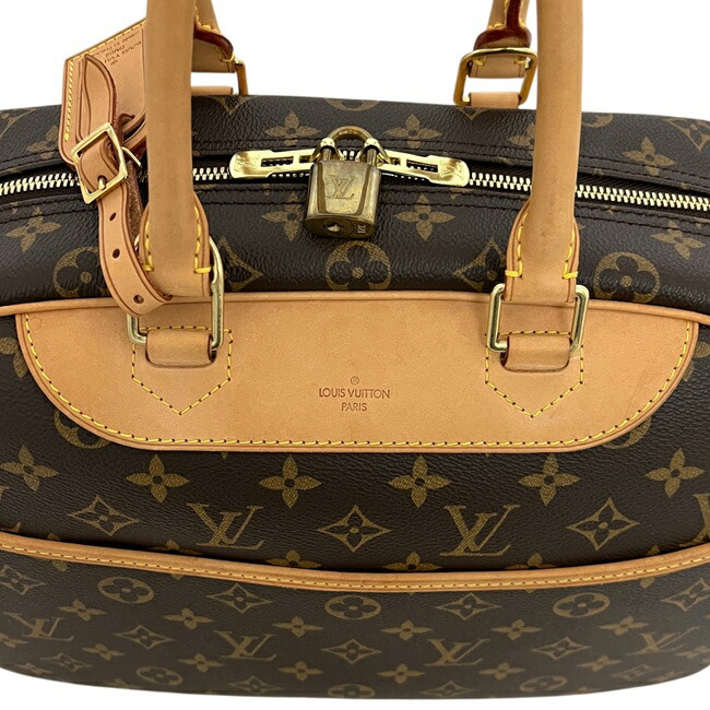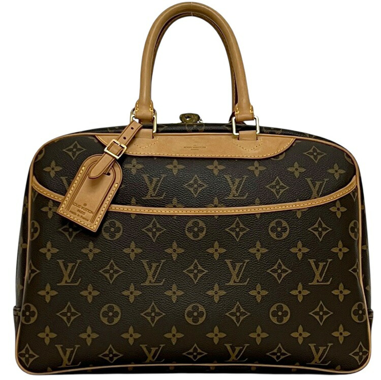 商品名:ハンドバッグドーヴィルボーリングヴァニティブランド名:ルイヴィトン/LOUISVUITTON商品ランク:Aランク素材:モノグラムキャンバスヌメ革サイズ:(約)w:34.5cm×h:24.5cm×d:15cm型番・品番:M47270シリアル:SP2027ライン:モノグラムカラー:ブラウン茶色仕様:外:オープンポケット×1、内:オープンポケット×4、ホルダー×4付属品:ネームタグ、パドロック(鍵×2本)、印刷物詳細説明:ヌメ革部分全体にヤケによる変色や薄傷やシミ汚れ、底部の角に擦れ有、使用感は多少ございますが比較的綺麗なお品物です。管理ナンバー:f-25424no,00500321260409