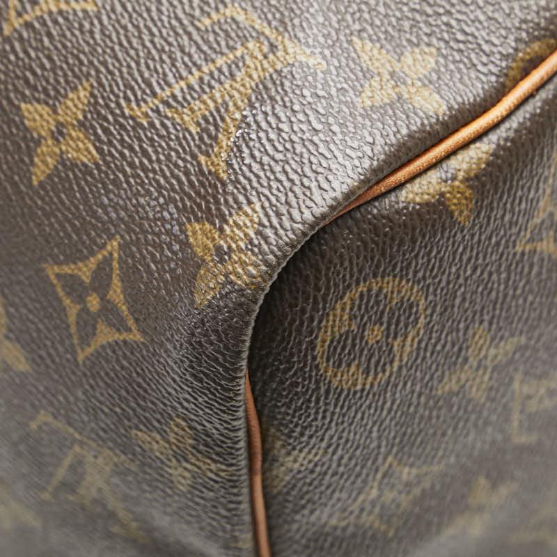 | 状態ランク | AB 外側⇒スレ・キズ・汚れ・変色・若干のたたみジワ サイド⇒レザーとパイピングにスレ・キズ・シミ・汚れ・変色 ハンドル⇒スレ・キズ・シミ・汚れ・変色・割れ、コバに亀裂 金具⇒黒ズミ・メッキはがれ・僅かに緑青サビ 内側⇒スレ・汚れ |