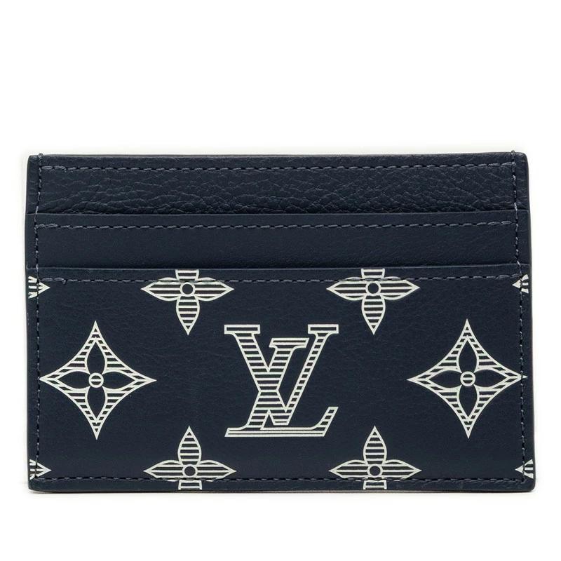 - ルイ ヴィトン モノグラム シャドウ カードケース パスケース M83700 ネイビー ホワイト レザー メンズ LOUIS VUITTON 【中古】