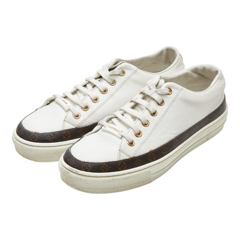 Louis Vuitton Monogram Stellar Low-Top Sneakers, Size 37, 1A8NDV, White and Brown Leather, Women's, LOUIS VUITTON [1-0216494]