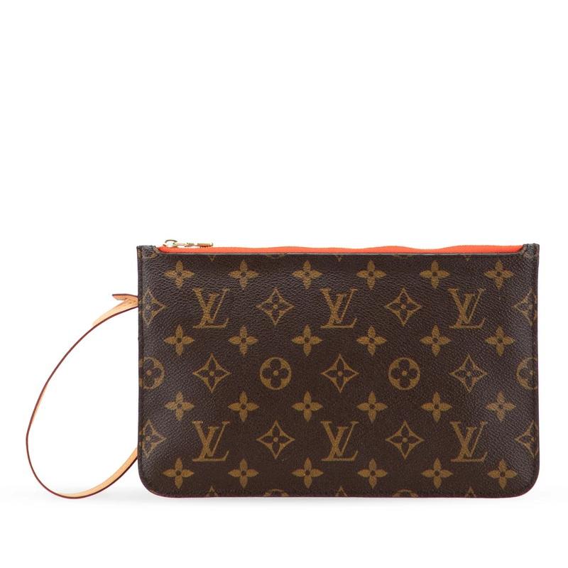 Pre-owned Louis Vuitton Monogram Neverfull MM pouch in brown PVC and leather. Women's.