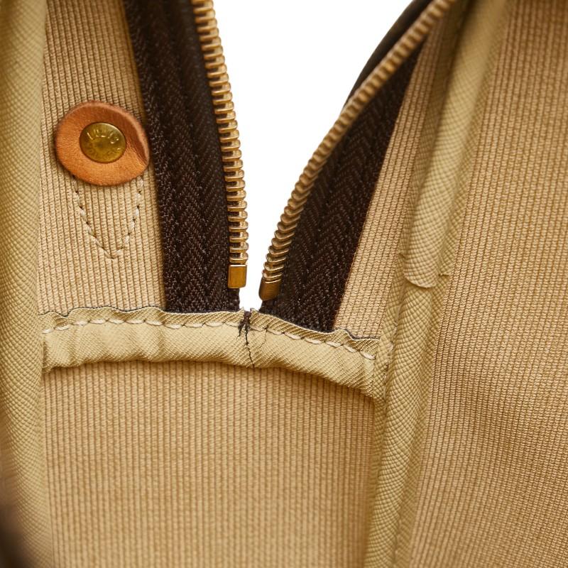| 状態ランク | AB 外側⇒レザーとパイピングにスレ・シミ・変色、オープンポケット内に僅かな汚れ サイド⇒糸切れ 底面⇒角スレ ショルダー⇒スレ・色あせ、レザー部分に若干の亀裂 金具⇒変色・メッキはがれ 内側⇒若干のスレ・汚れ、ファスナーエンド部分に亀裂 |