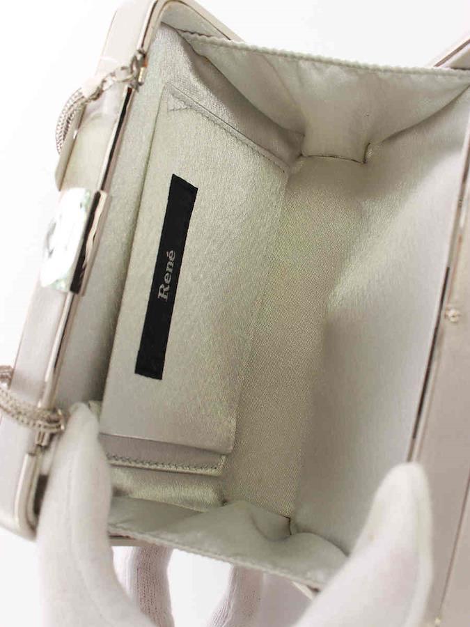 【管理番号】0431205h0201163【ブランド・アイテム】Rene バッグ【性別タイプ】レディース【表記サイズ】【実寸サイズ】縦幅:約10.0cm横幅:約15.0cmマチ:約3.5cmショルダー:約35.0cm【カラー】シルバー【素材】画像参照【状態の詳細】USED品ではありますが、目立つダメージや大きな汚れのないコンディションのよい美品です。【汚れ・シミ】底付近に色付きがございます。【キズ】特に目立つものはございません。【毛玉・毛羽立ち】特に目立つものはございません。【使用感】少ない〜普通【こんな方におススメ】通常使用による使用感であれば特に気にならない方にオススメ【付属品】紙タグ【備考】【内ポケット】オープンポケット:1