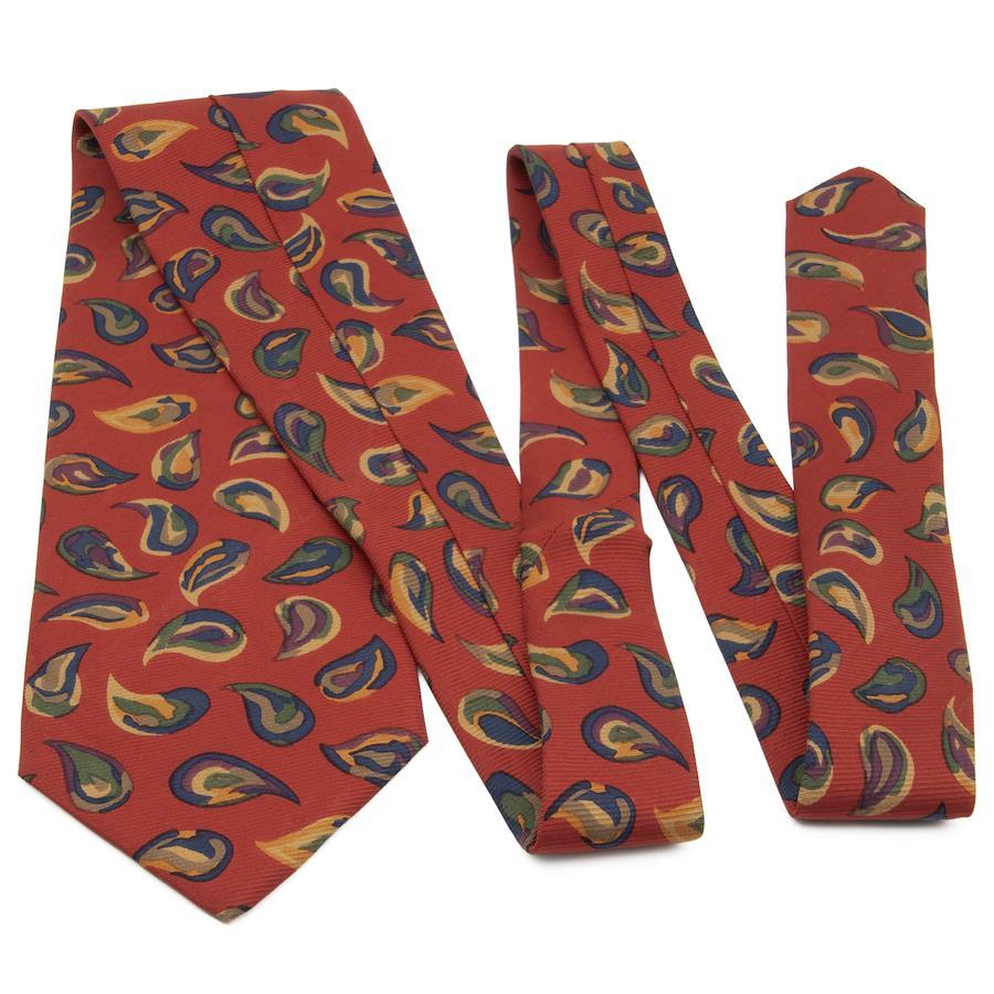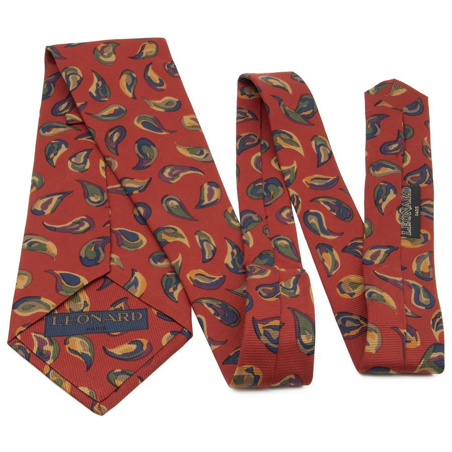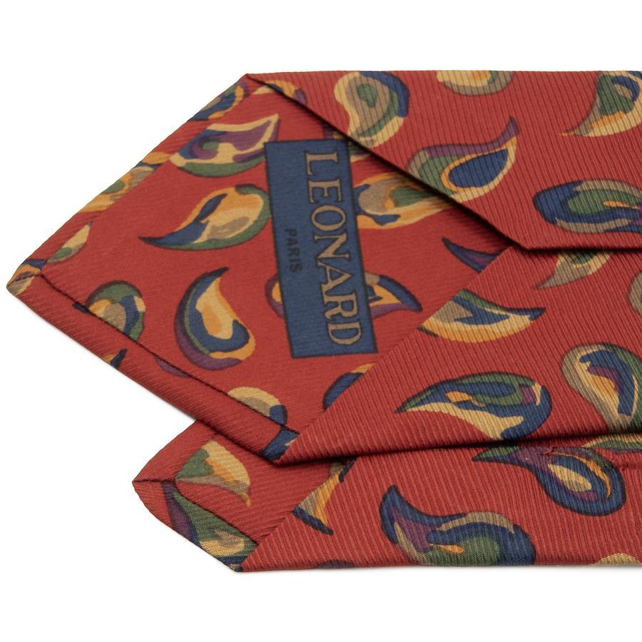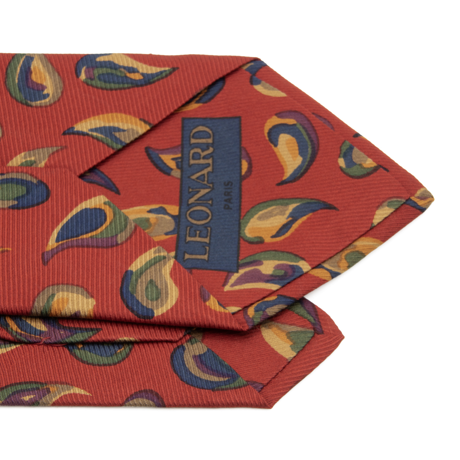 こちらは、情熱的なレッドにペイズリーが踊るような、レオナールのネクタイでございます。