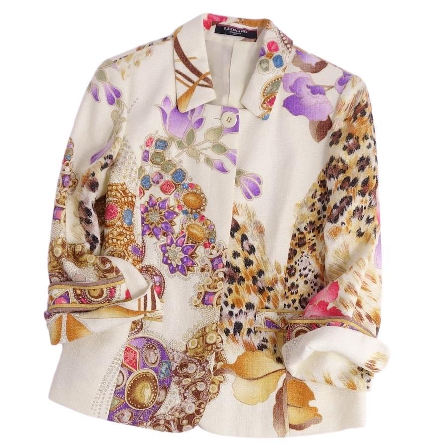 LEONARD FASHION Jacket, Single, All-over Pattern, Floral Pattern, Button Fly, Fully Lined, Outerwear, Women's, 11AR (M size), Multicolor [Used]